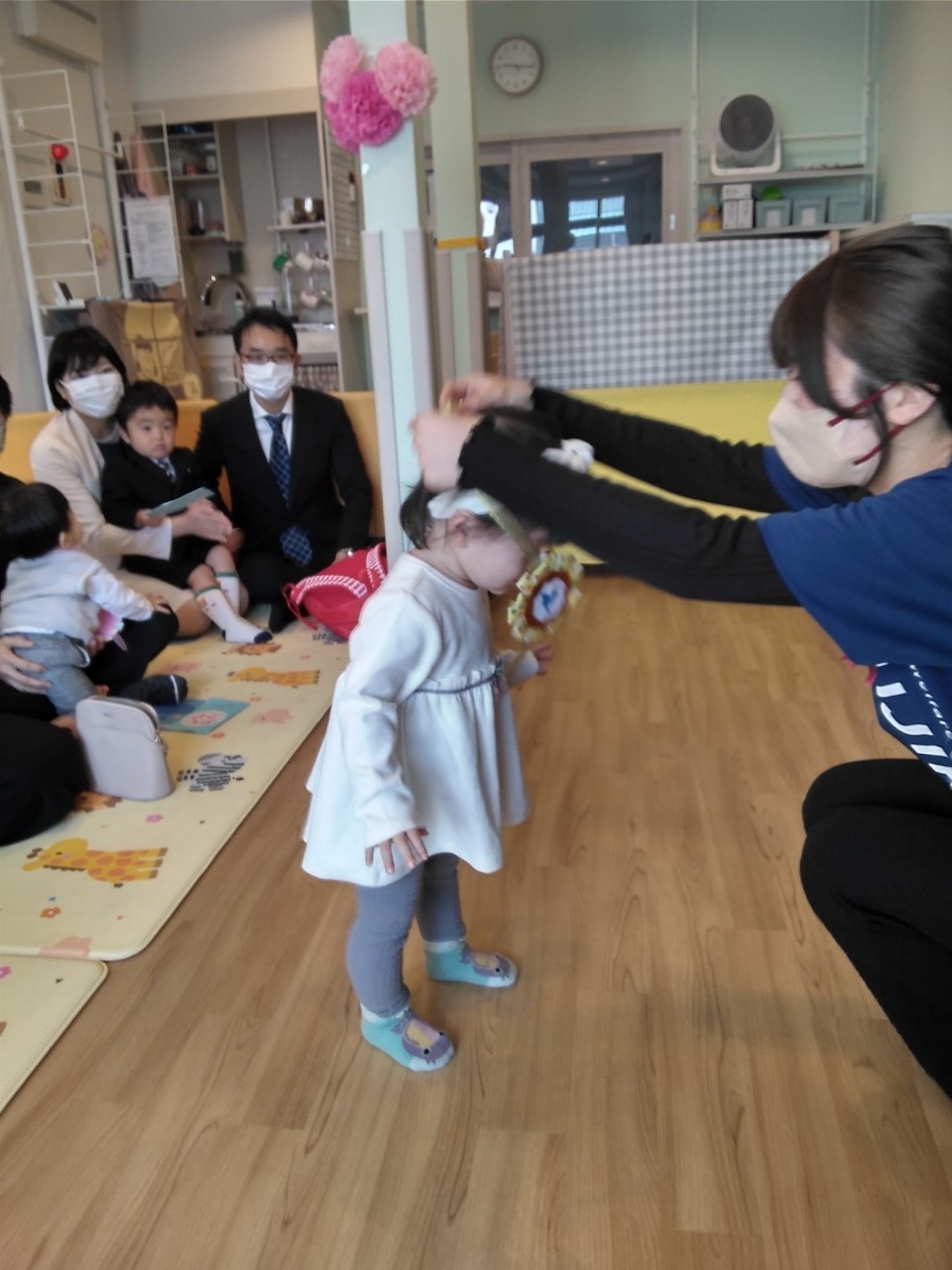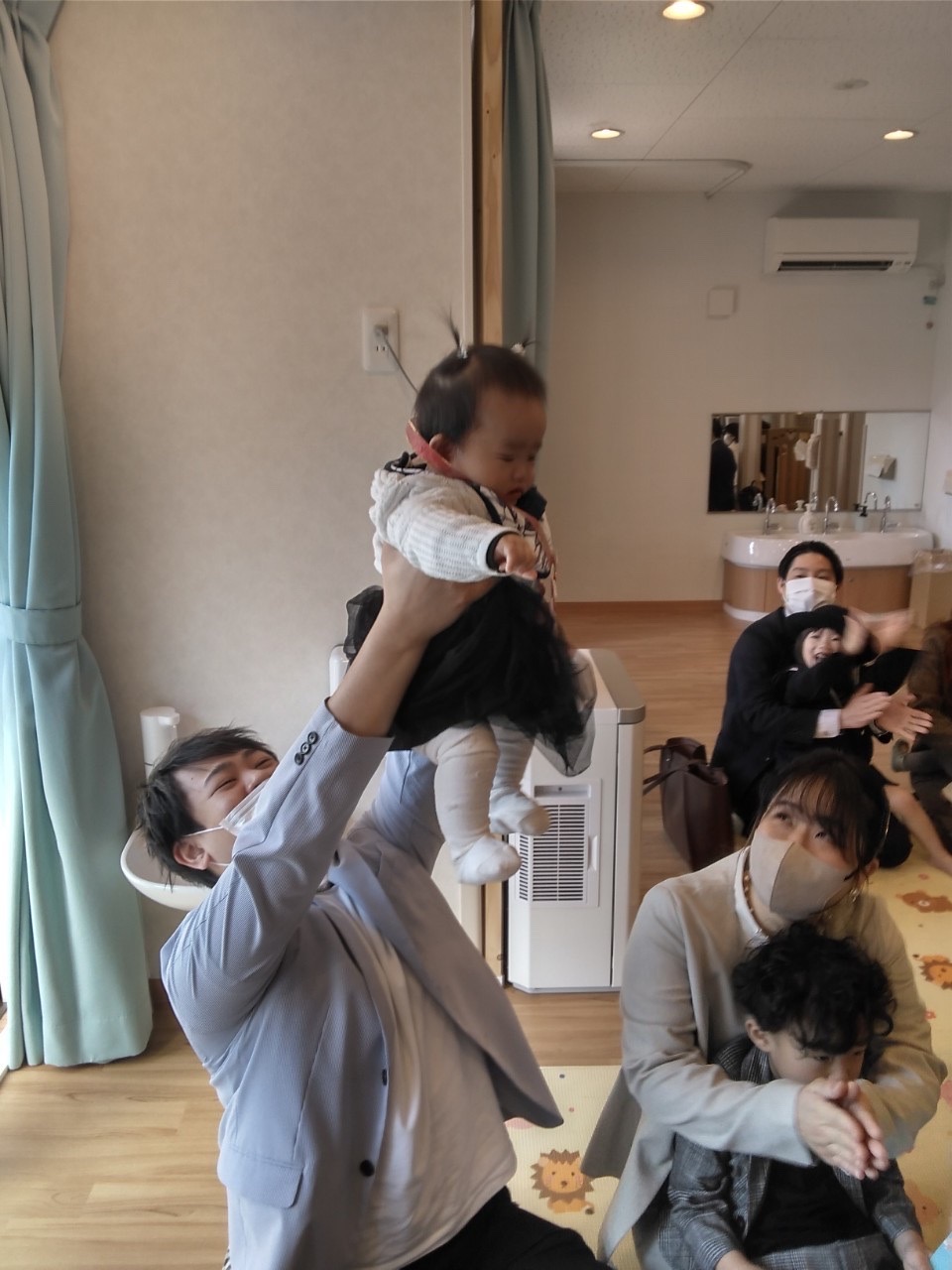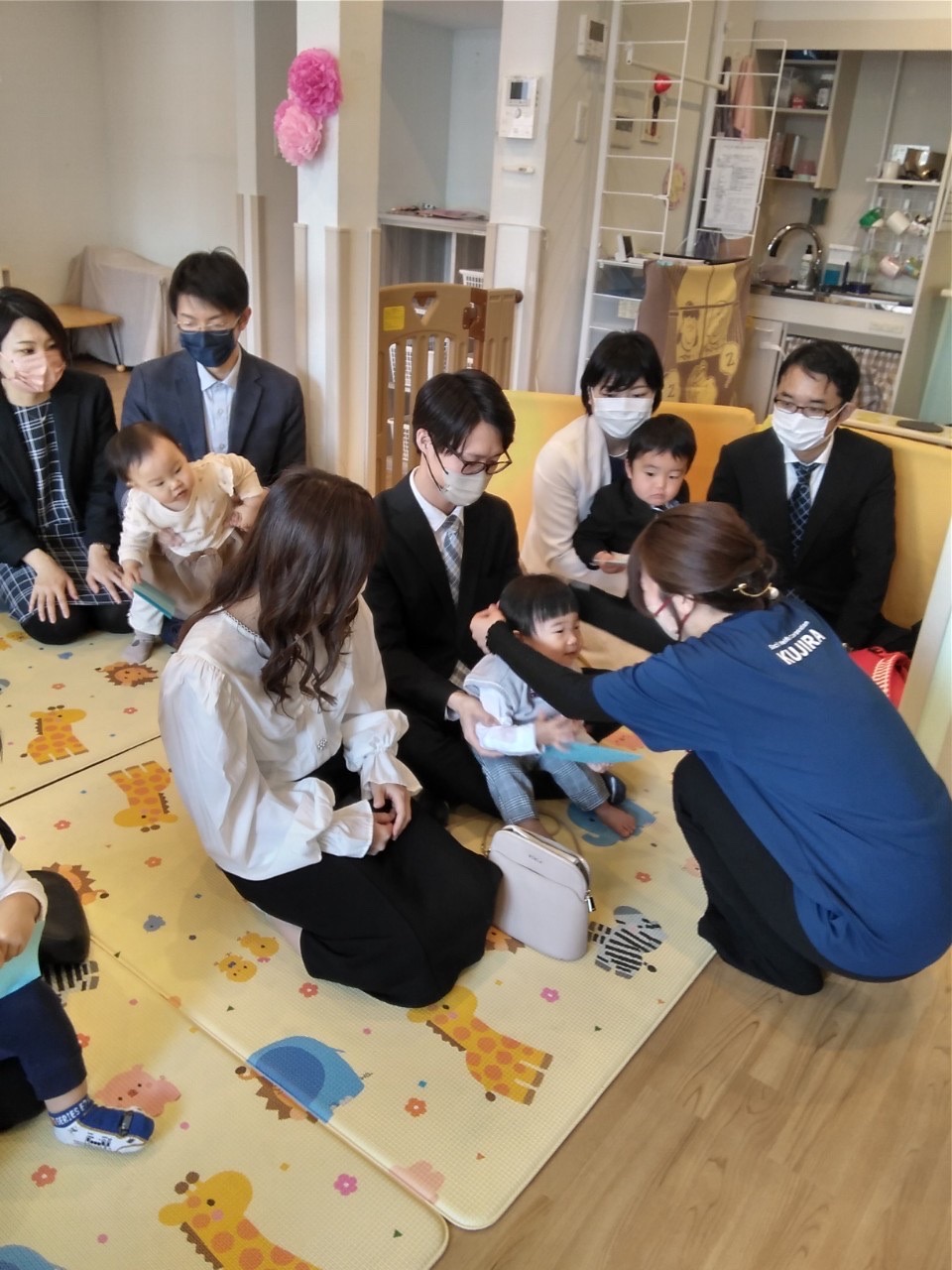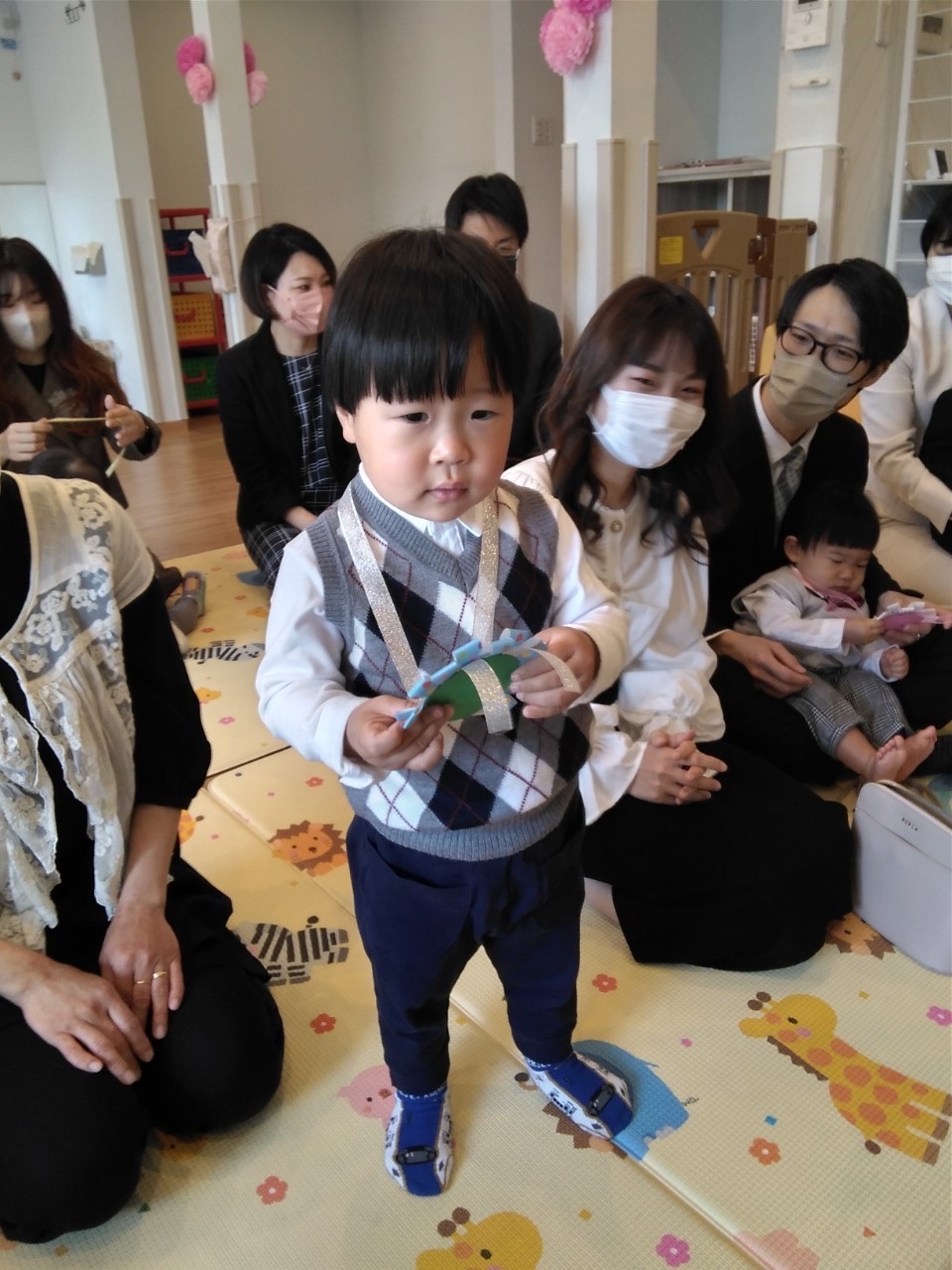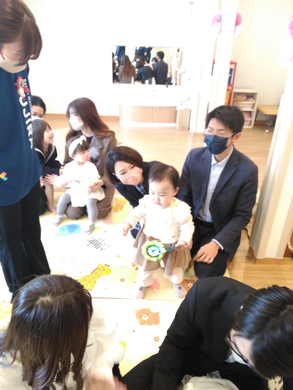 みんなにお顔が見えるようにおうちの方に抱っこしてもらってご紹介😊