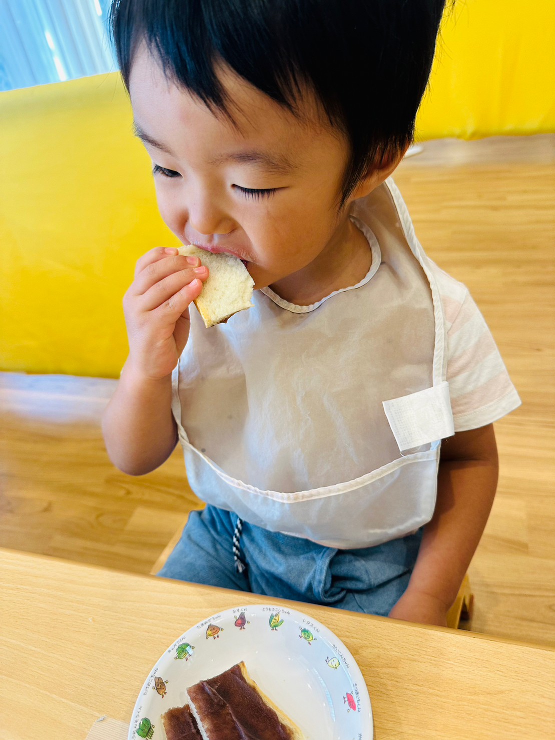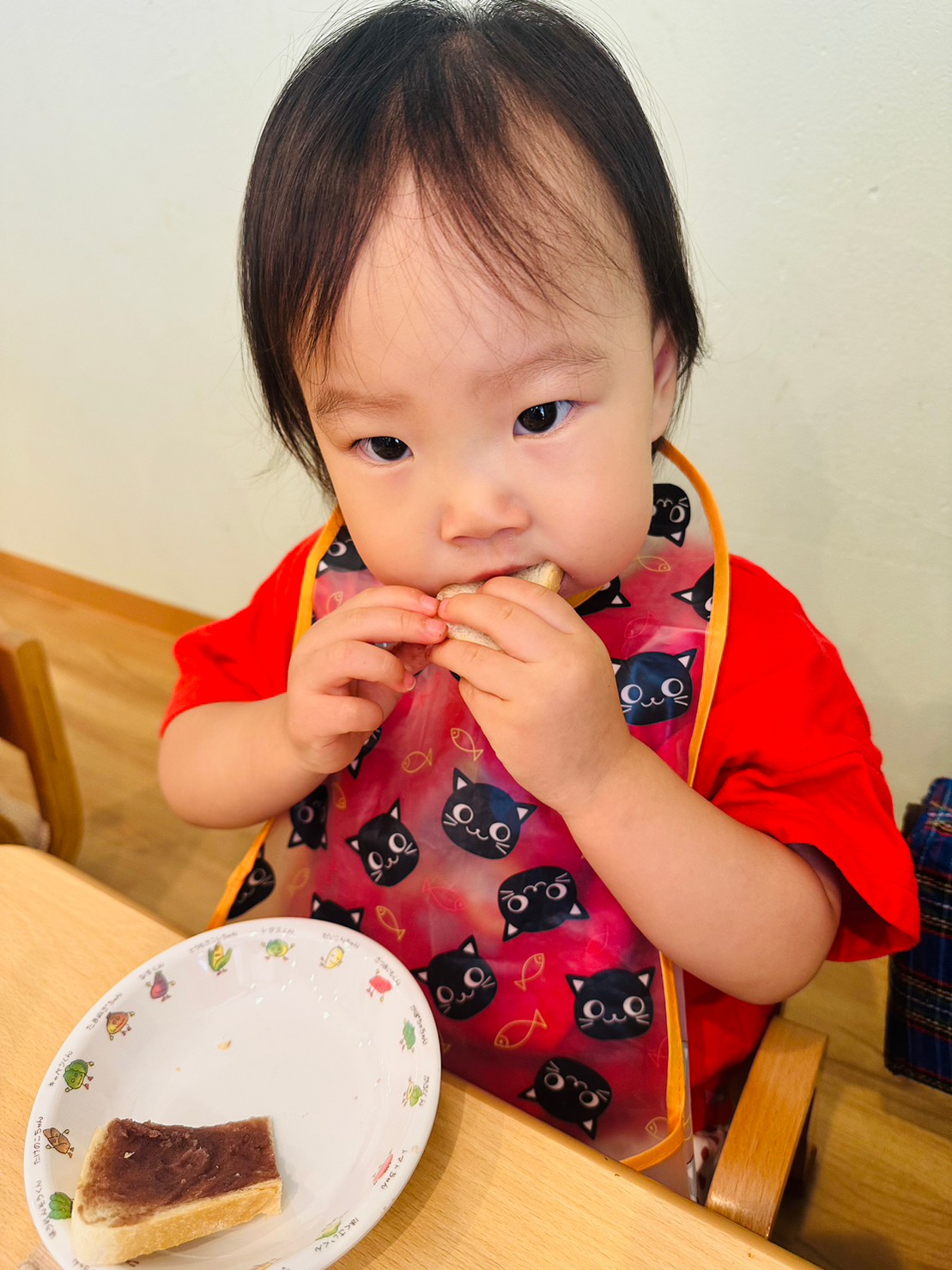 ガブリと大きなお口でかぶりつく姿や指についたあんこをぺろぺろなめてみたり、大満足の様子でした。