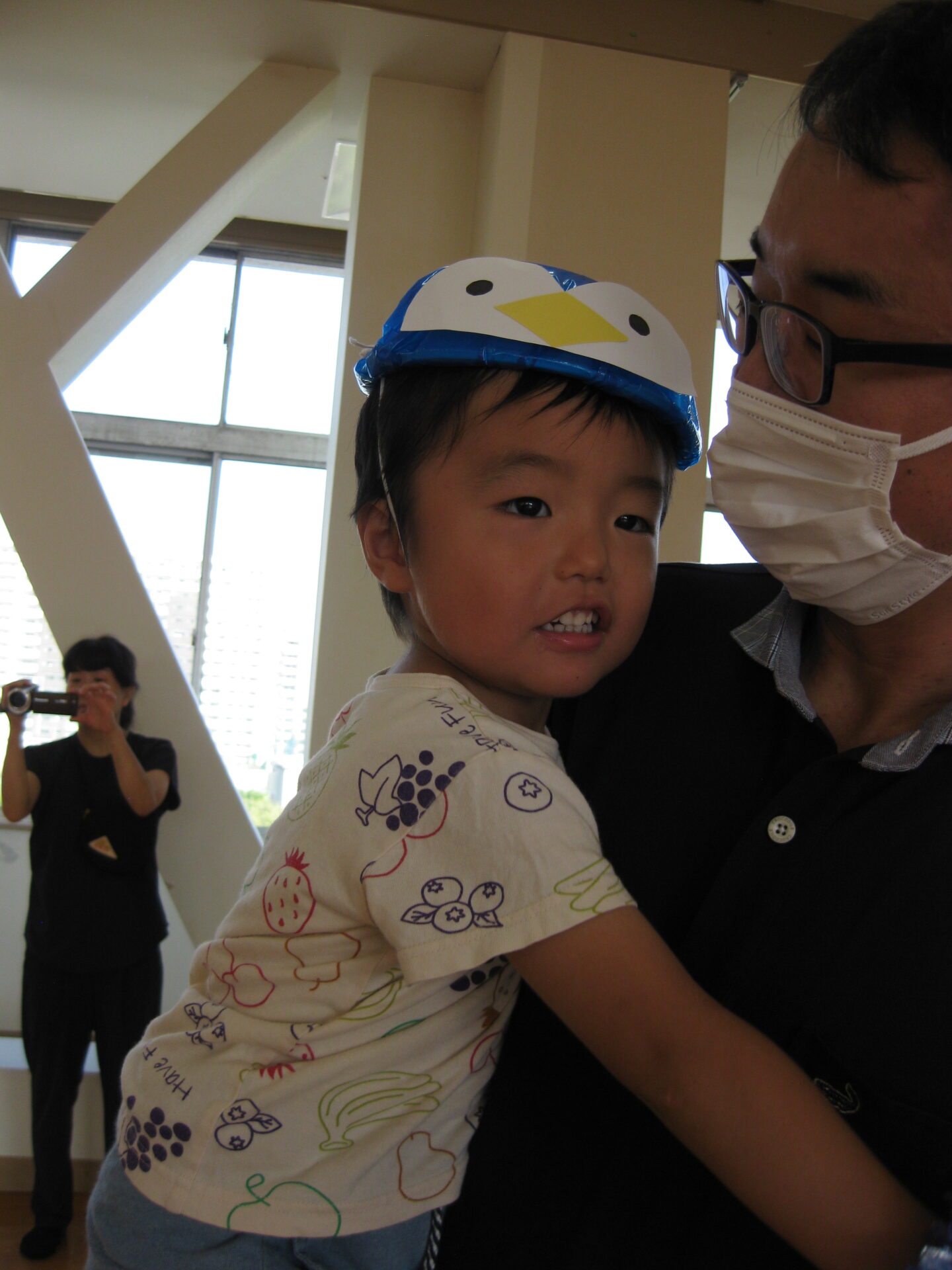 2歳児さんはペンギンのスペシャルアイテムを身に付け軽快にダンスやジャンプ!かっこいいよ!