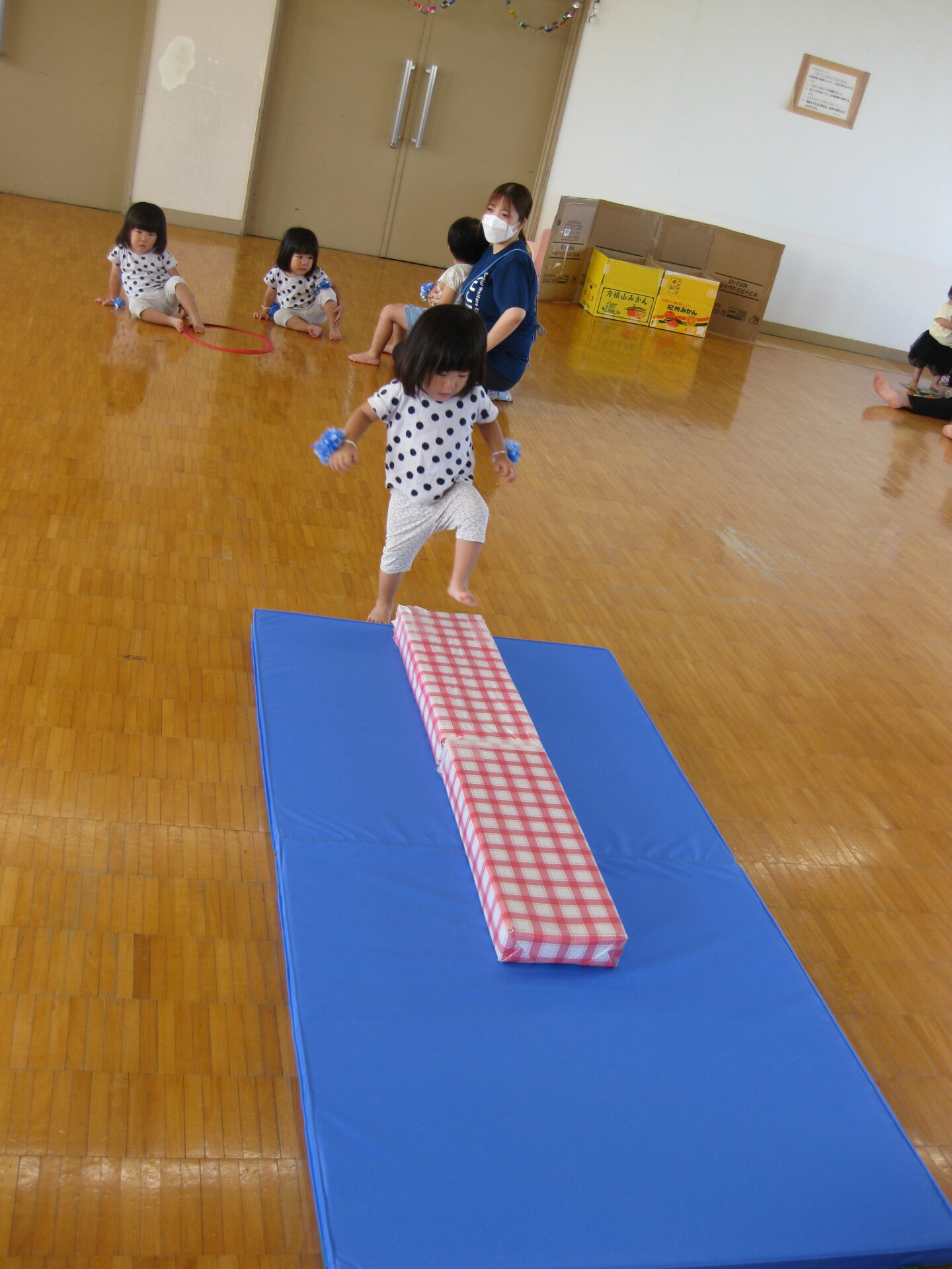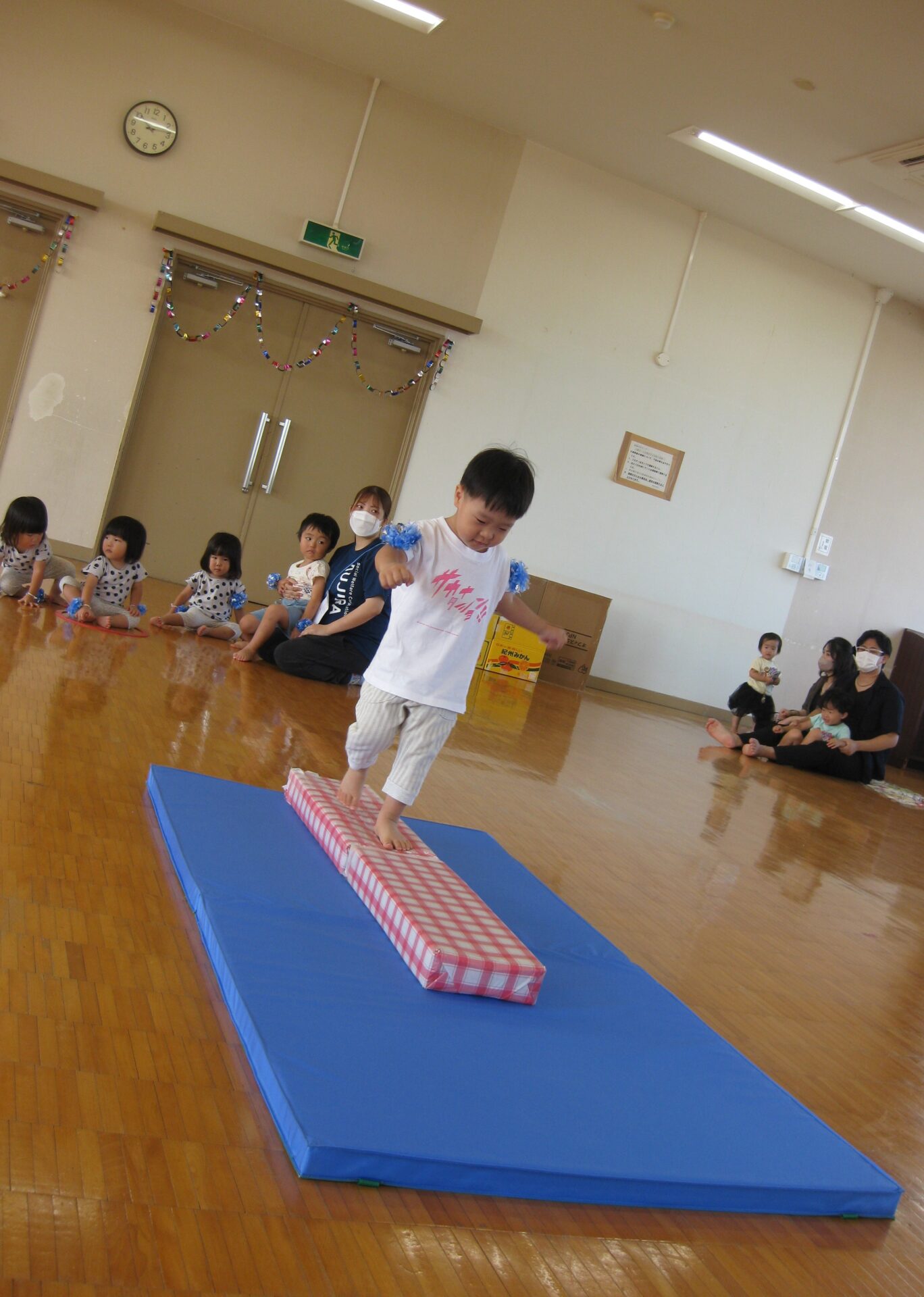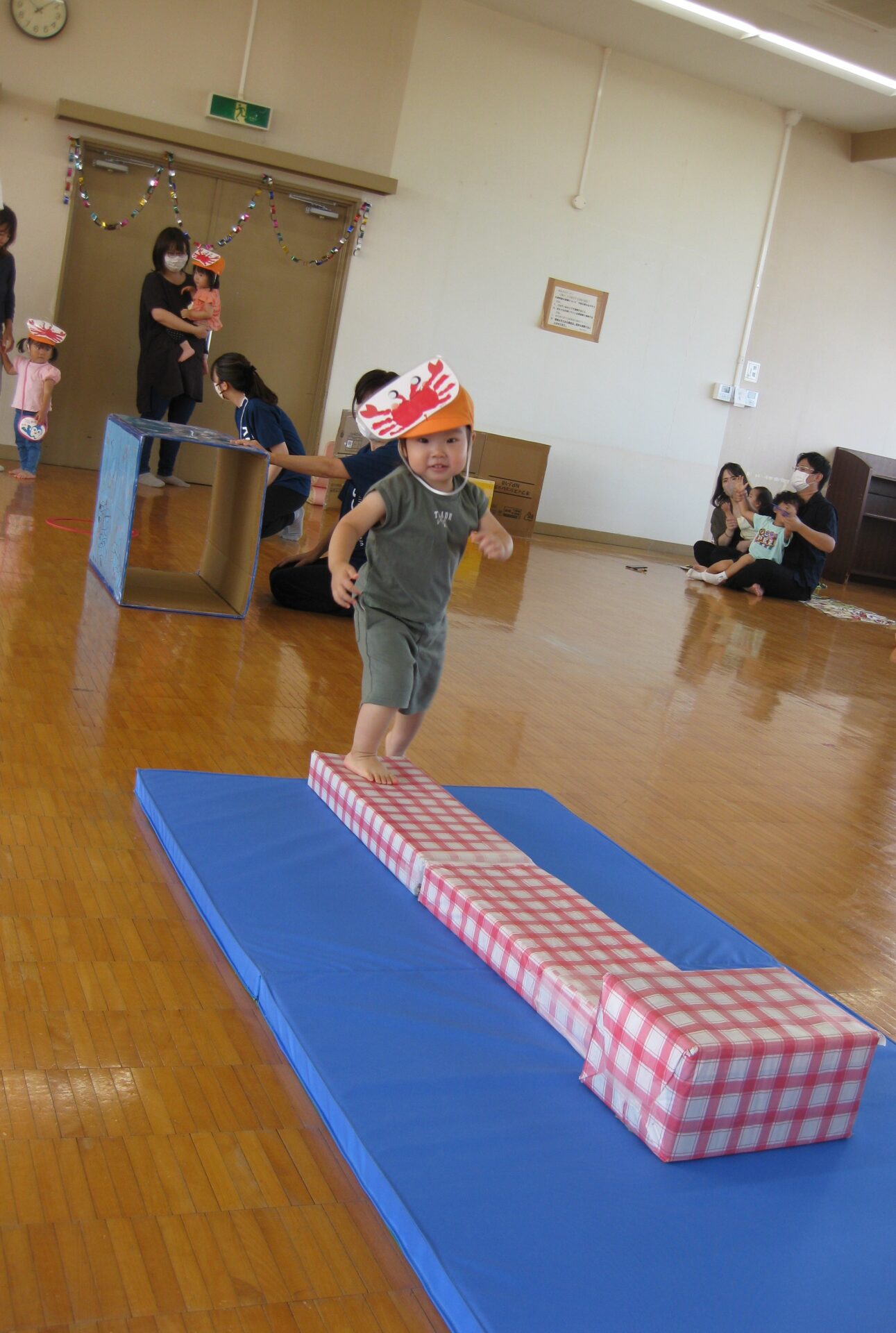 1歳児さんはカニさんになって可愛く親子でダンスや運動です。