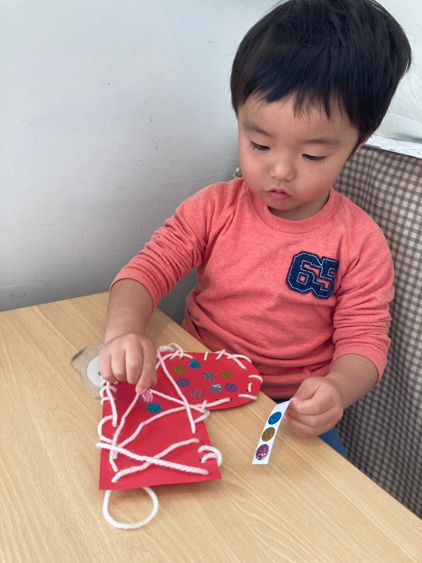 「鼻は目の下!」「ボタンはこの色!」とそれぞれ選び、貼る場所を考えながら完成させました🌟