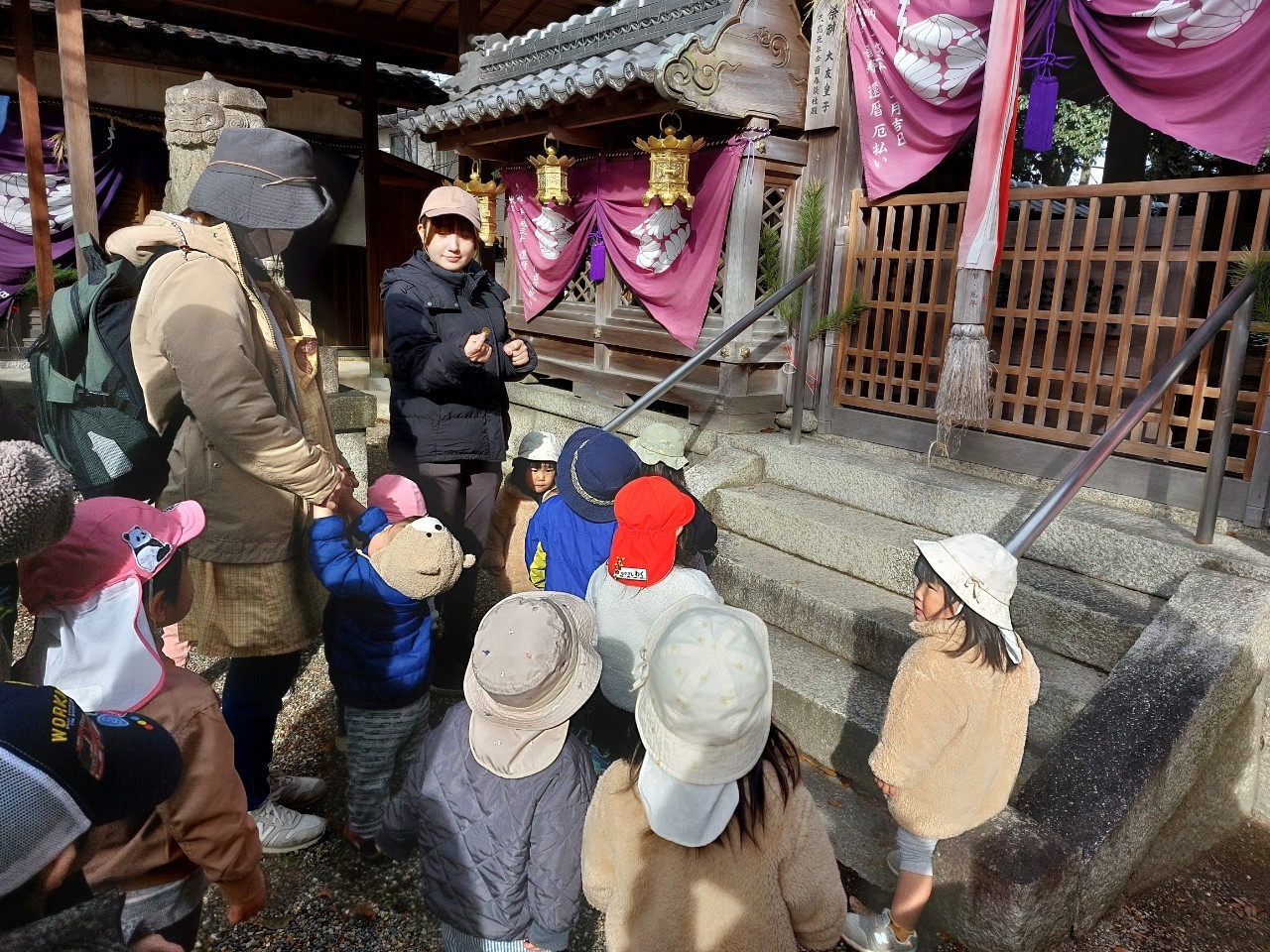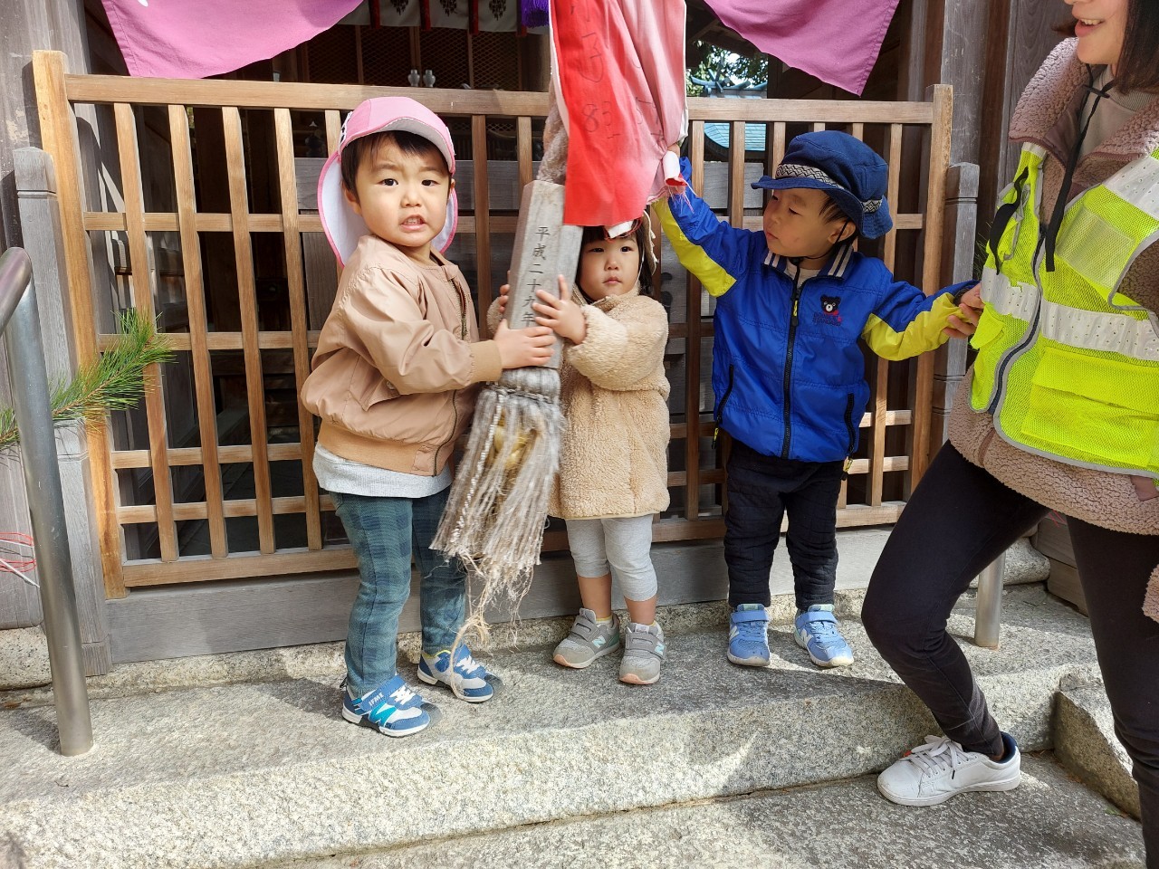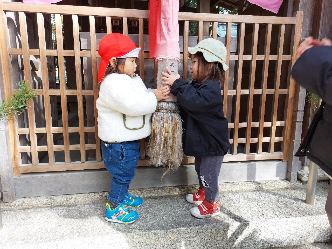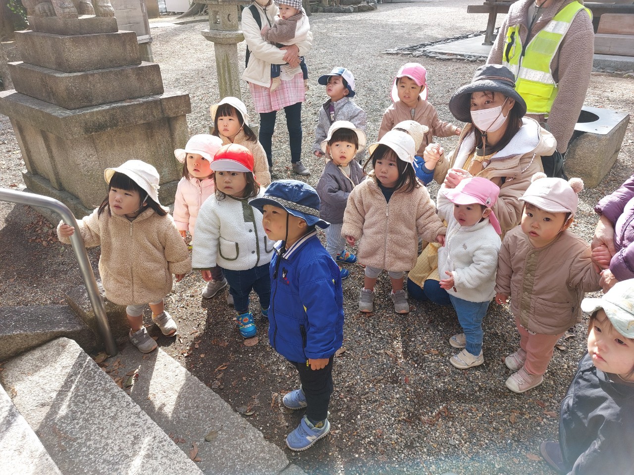保育者と一緒にお賽銭を入れて、ペコリとお礼も出来ました。
