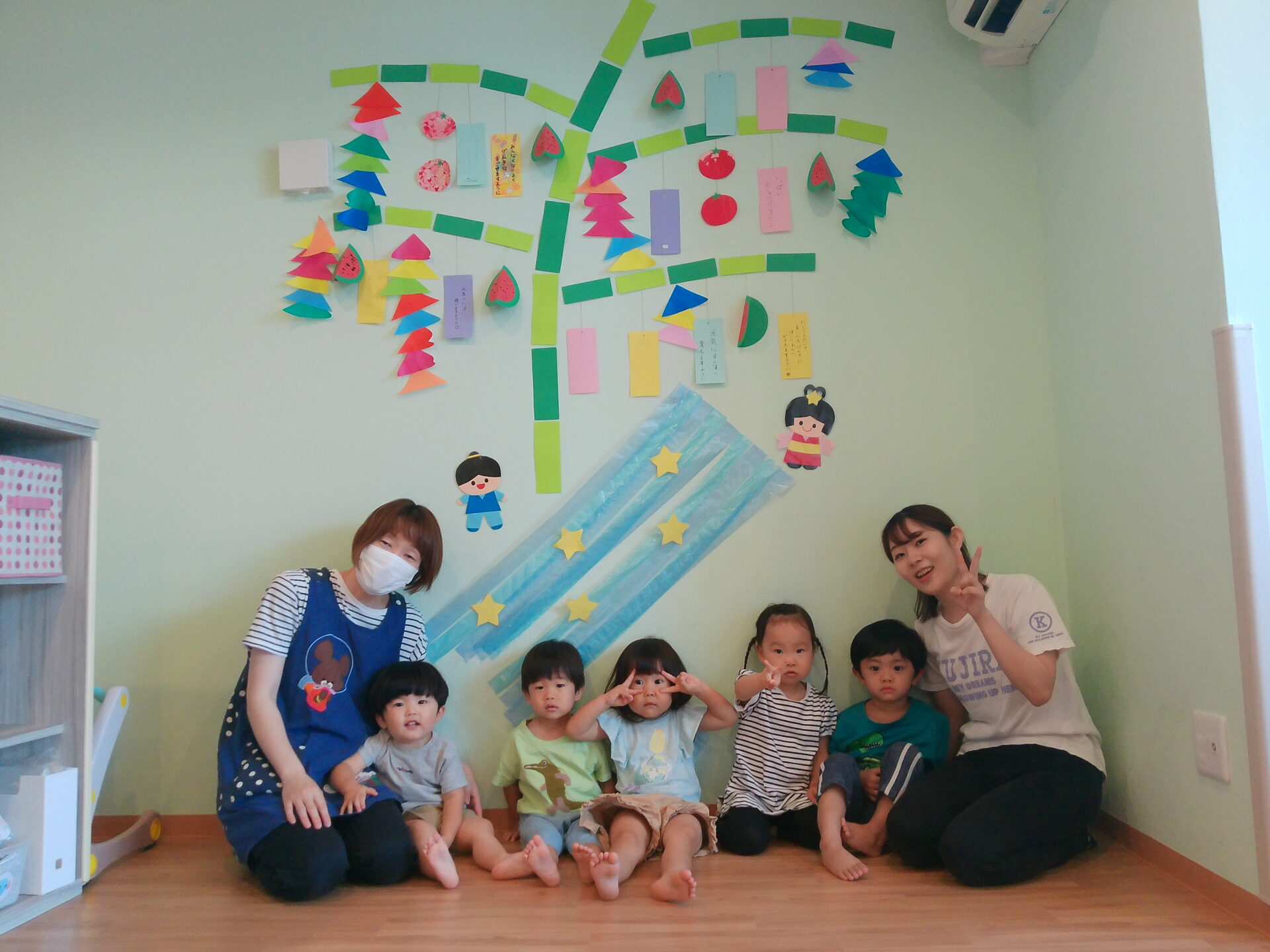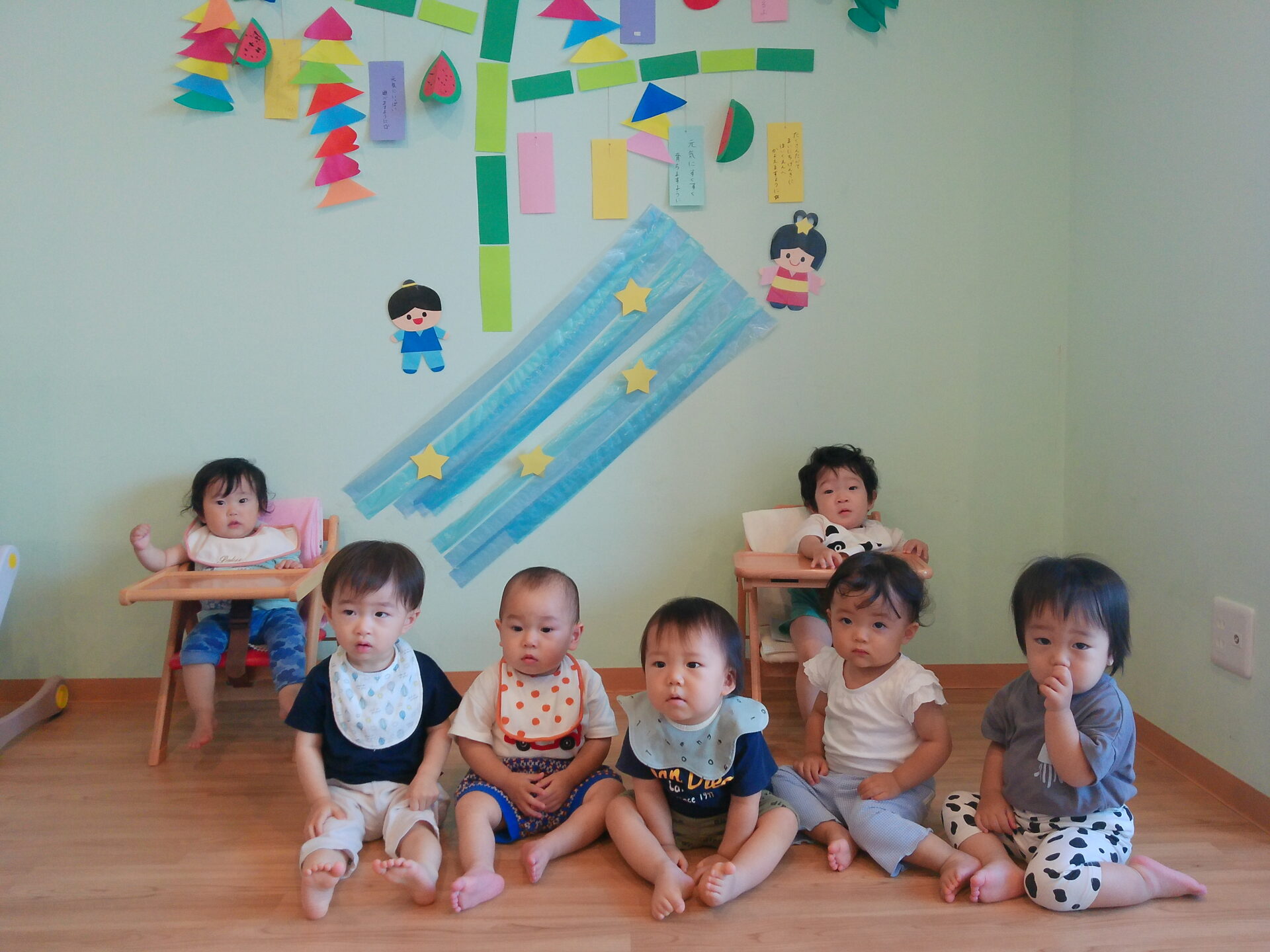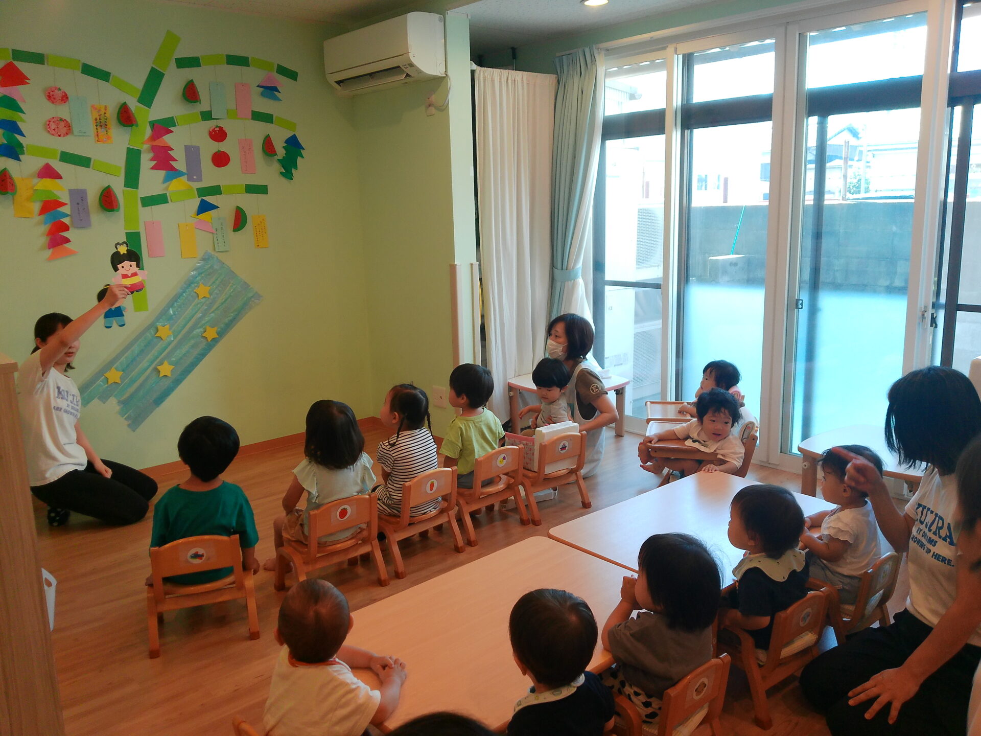 七夕やきらきら星の歌をうたったり、ちょっとした七夕の由来のお話を聞きました。