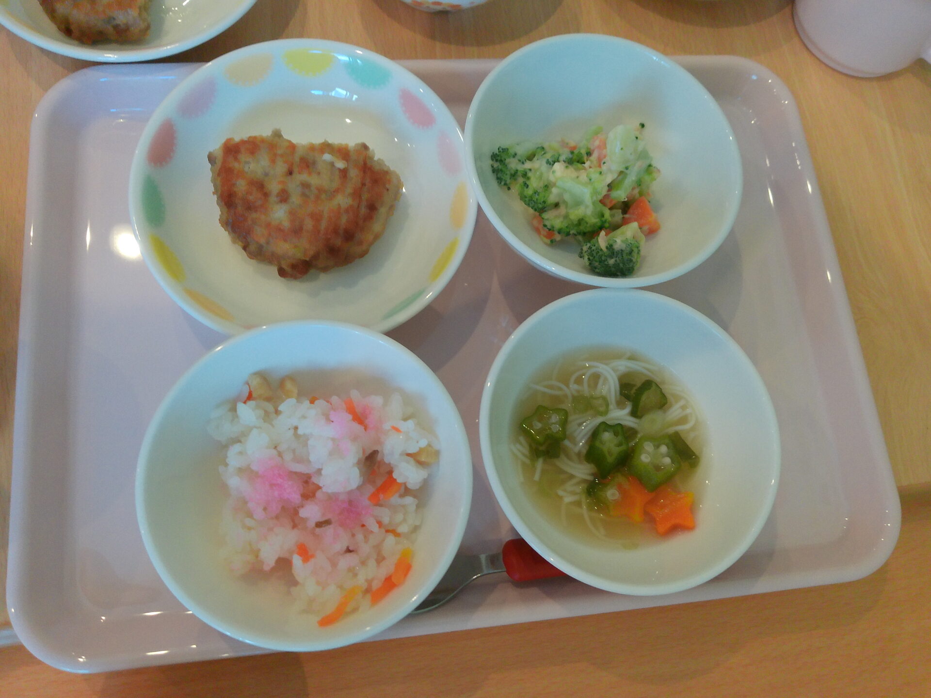 給食には、オクラ入りすまし汁がありました✨