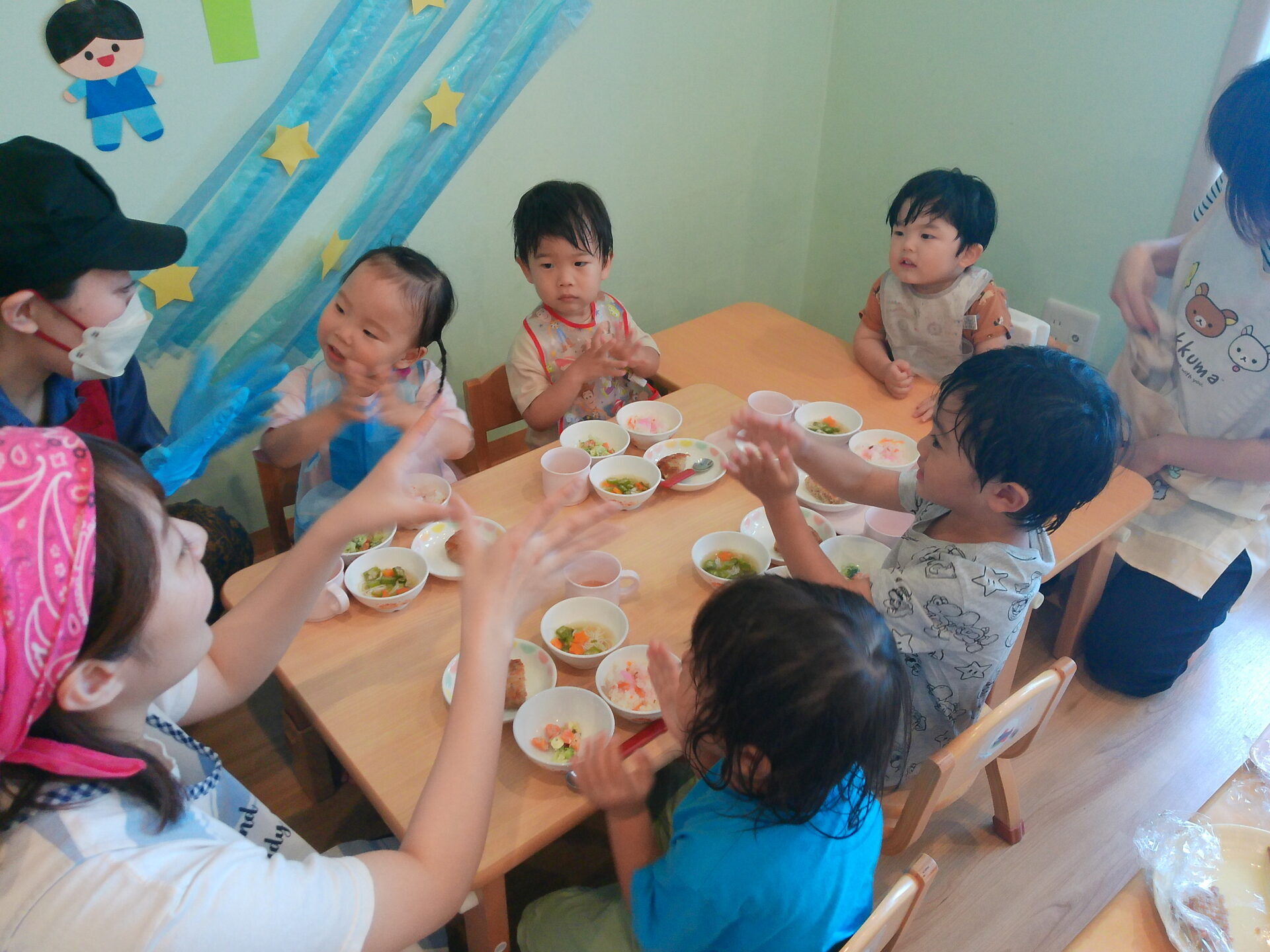 オクラは園で育てている物で、お星さまのにんじんも入っていてみんな大喜びでした!