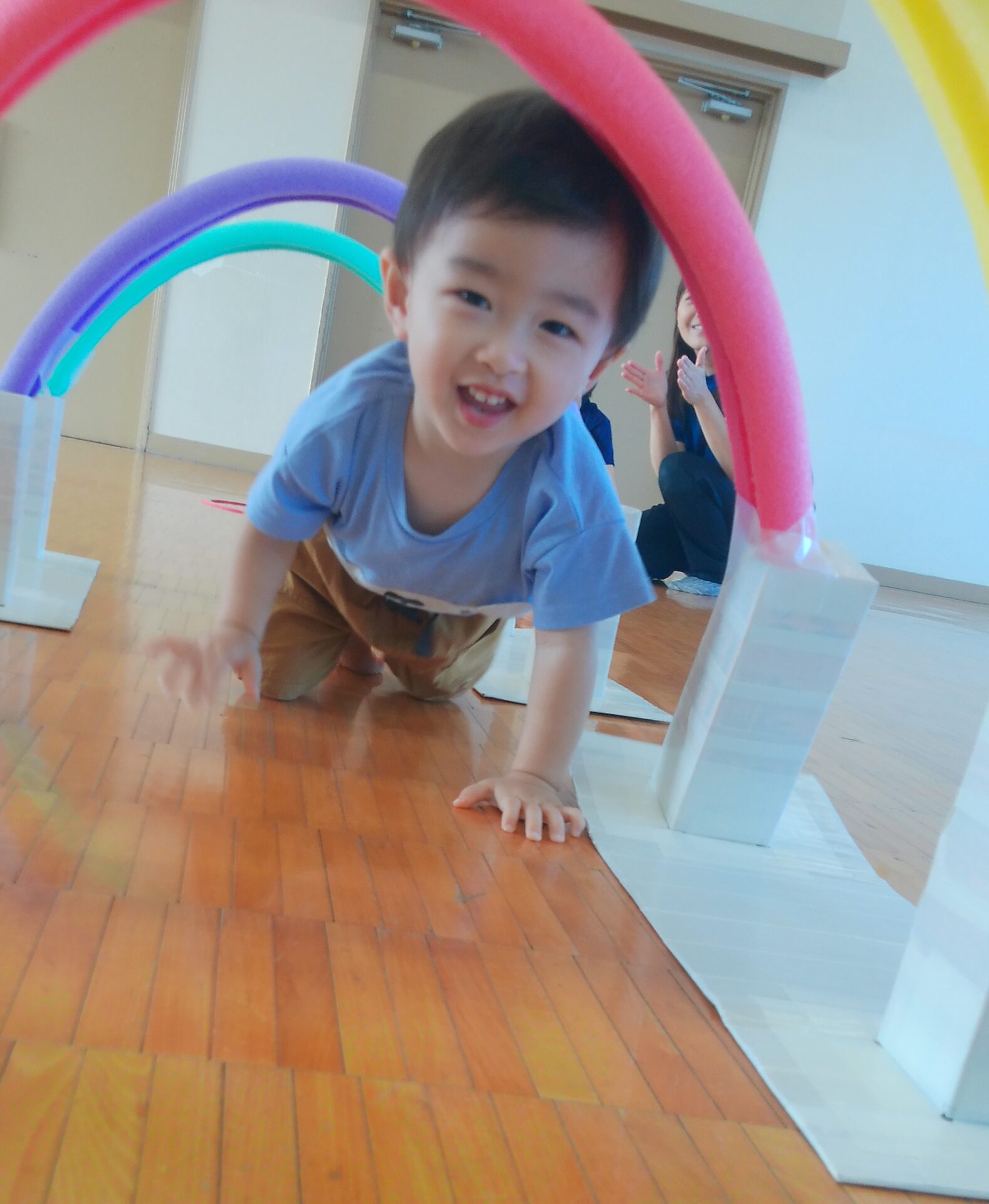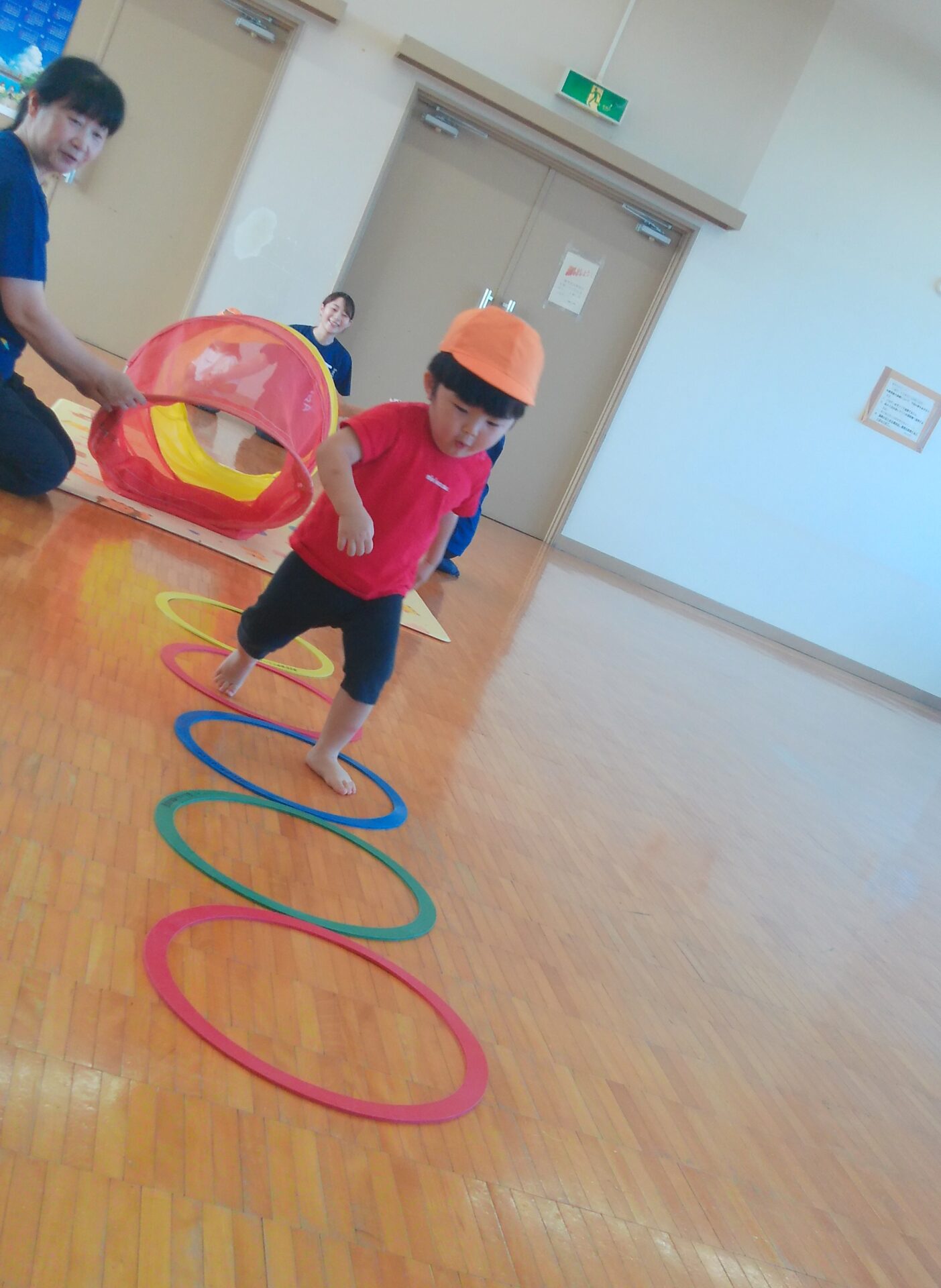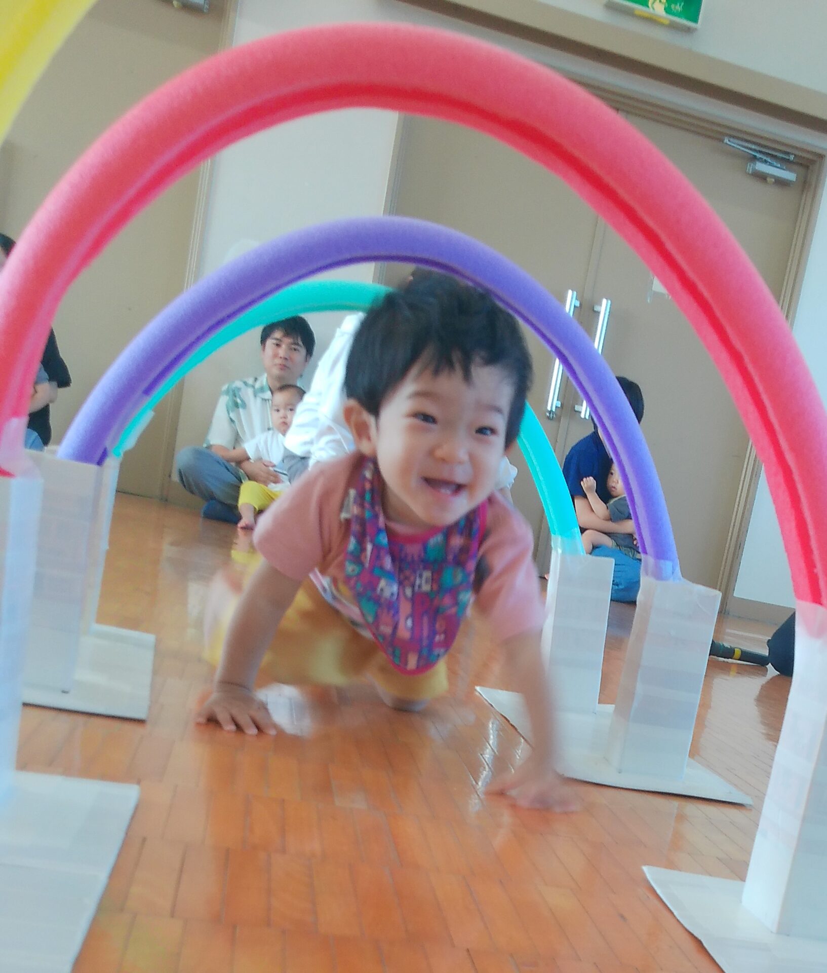 ちょっと緊張したお友だちもいましたが保育者と一緒に最後までゴール!