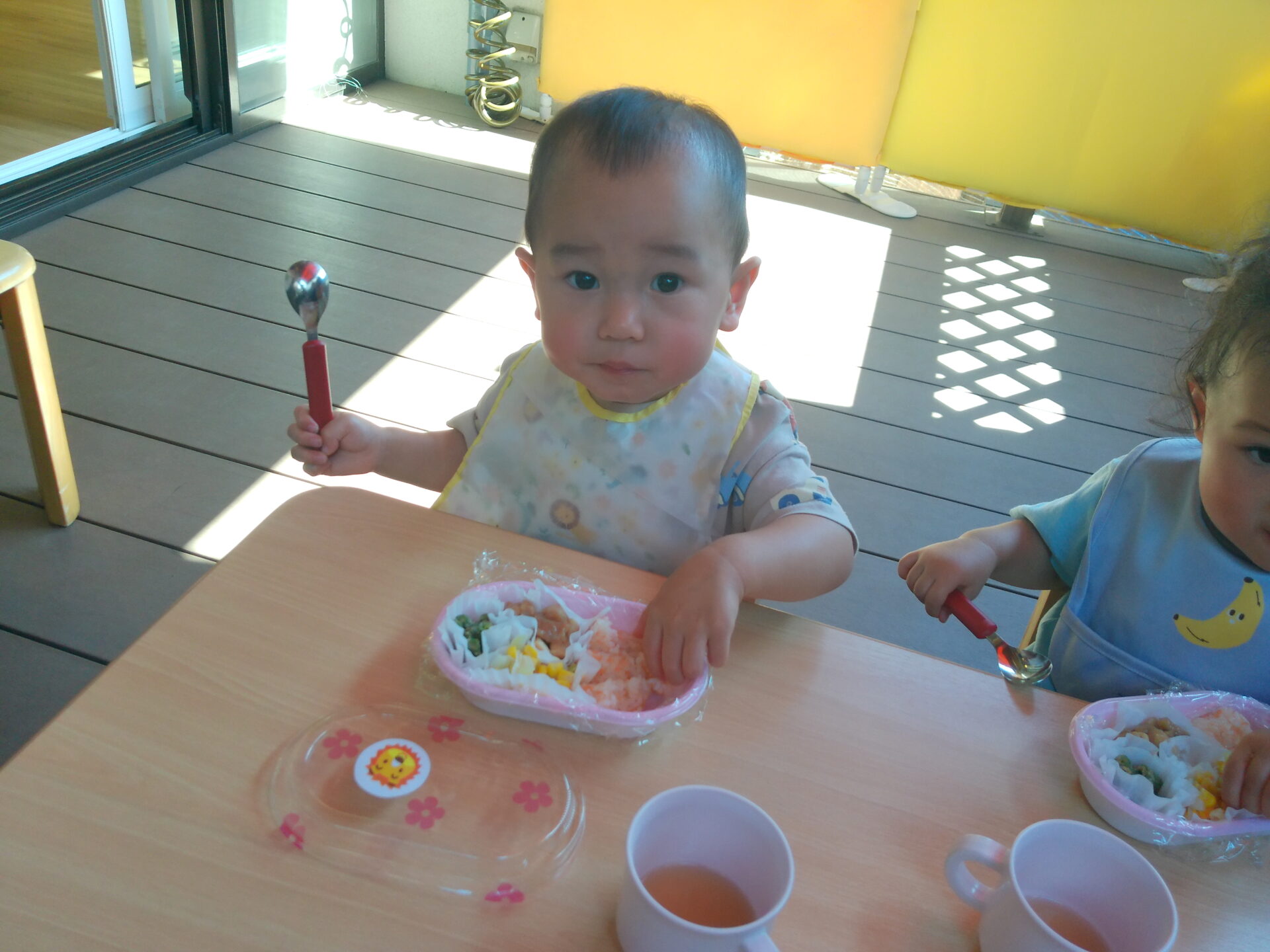 お外で食べるごはんは美味しいね💞