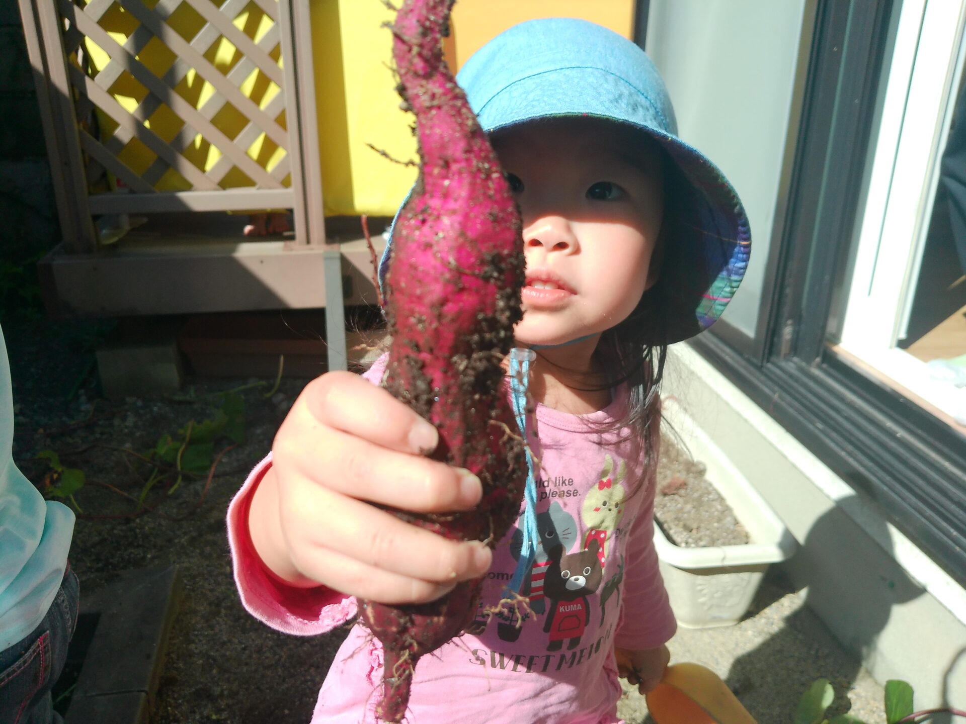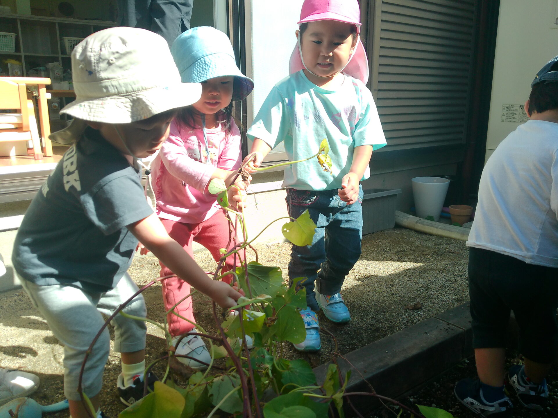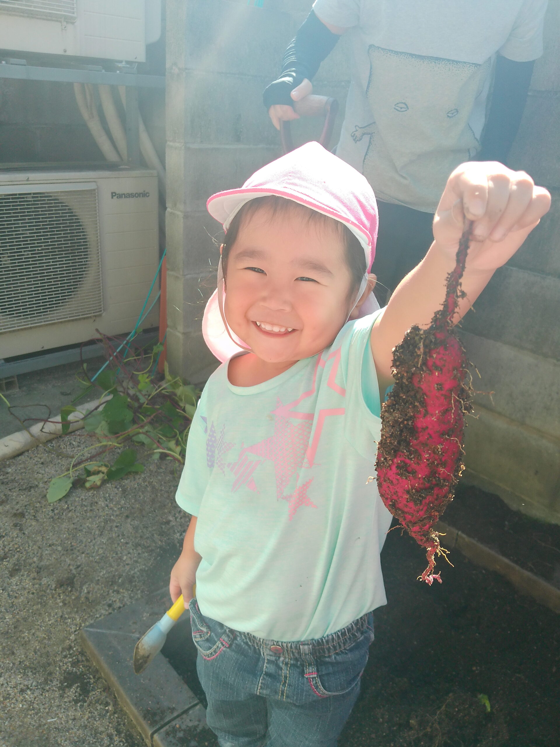 今年も石山くじら小規模保育園の小さな菜園にて、さつまいもができました。