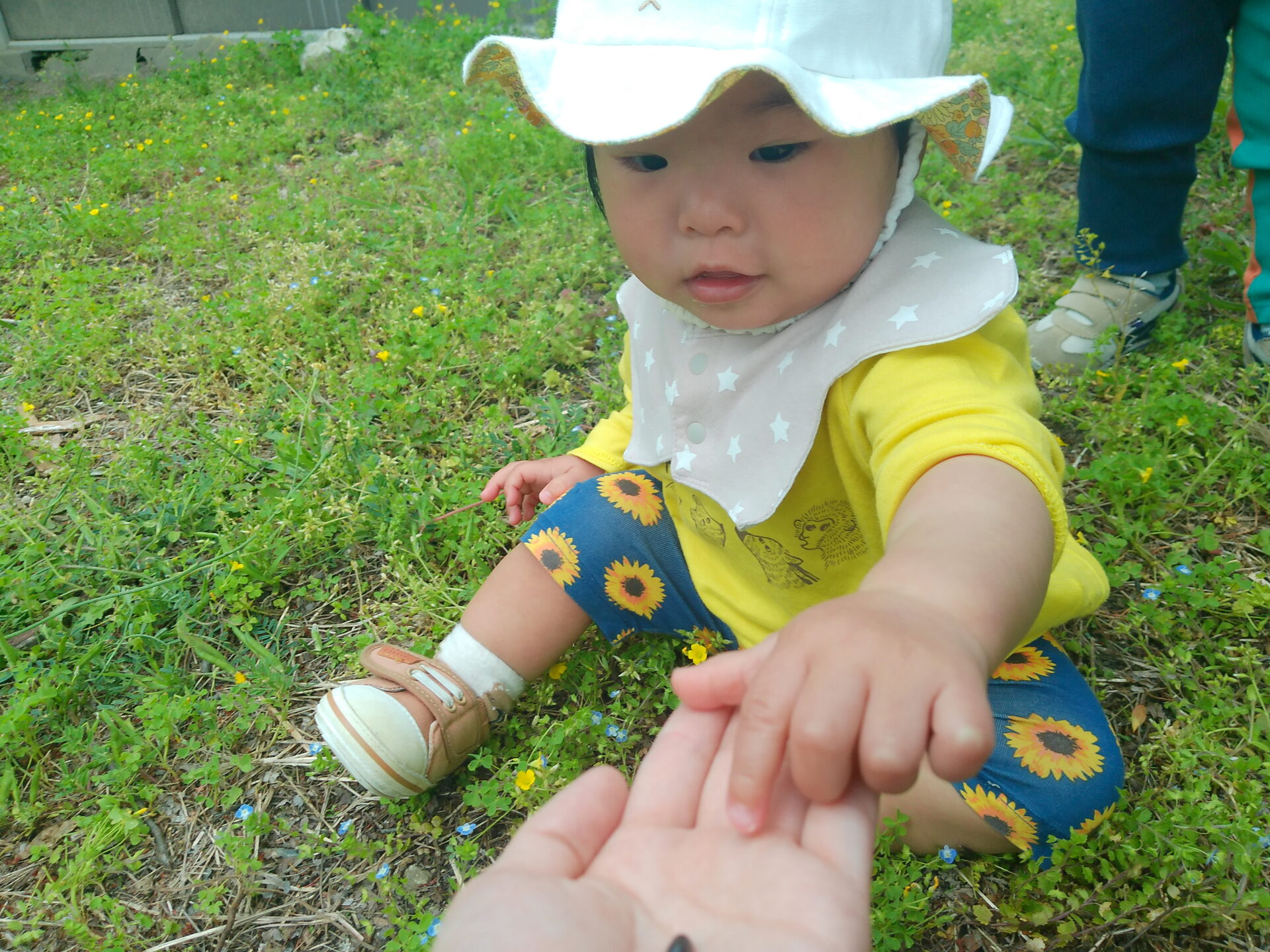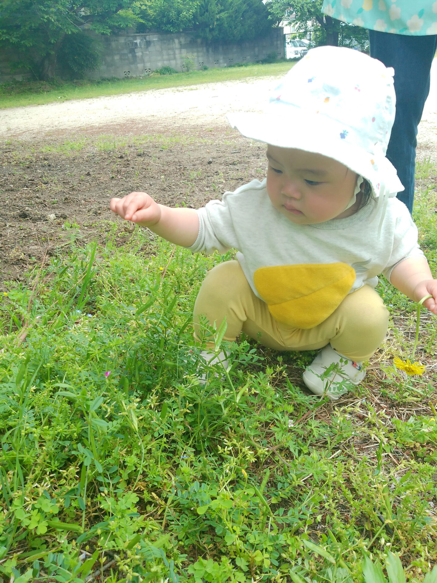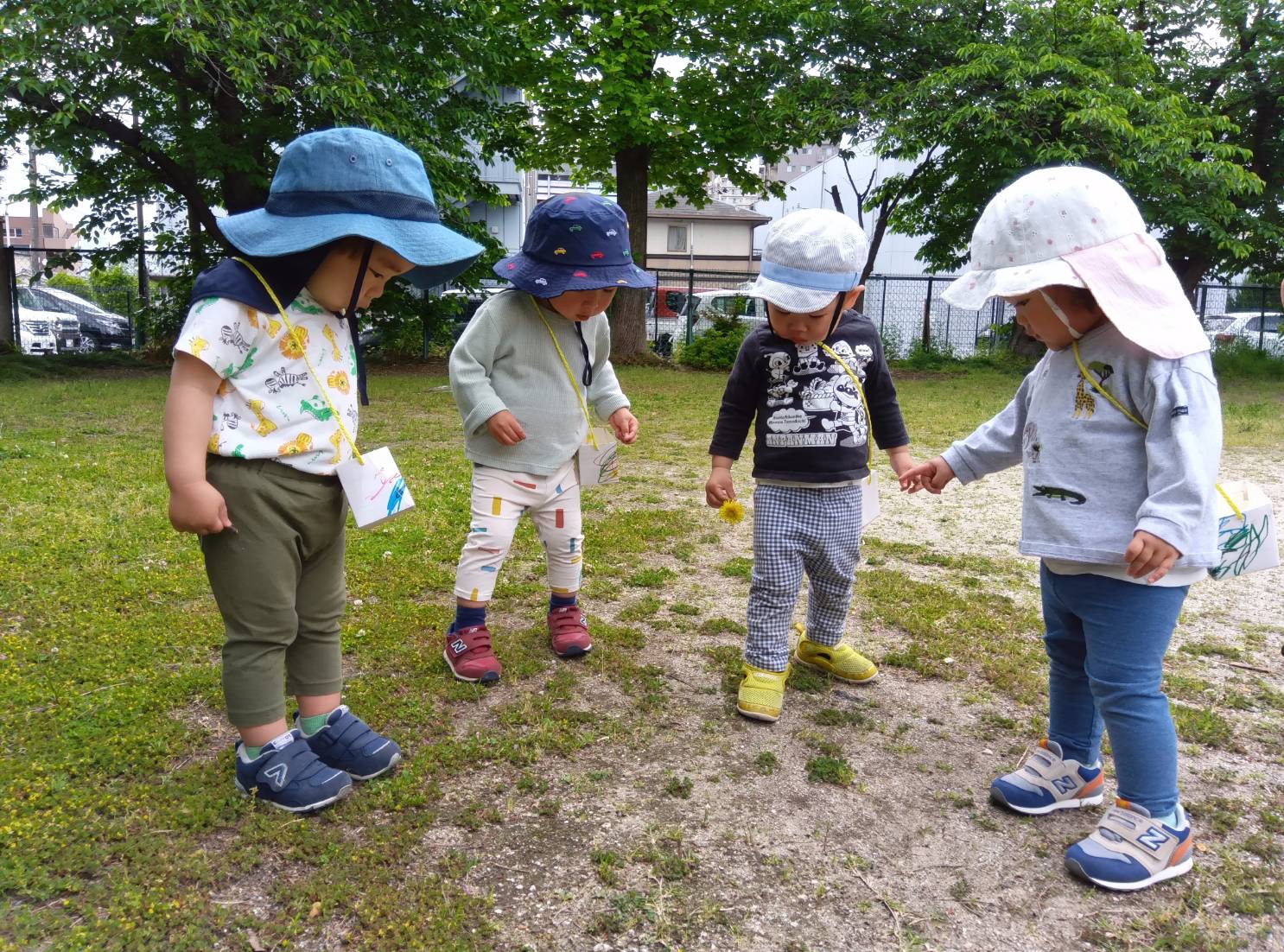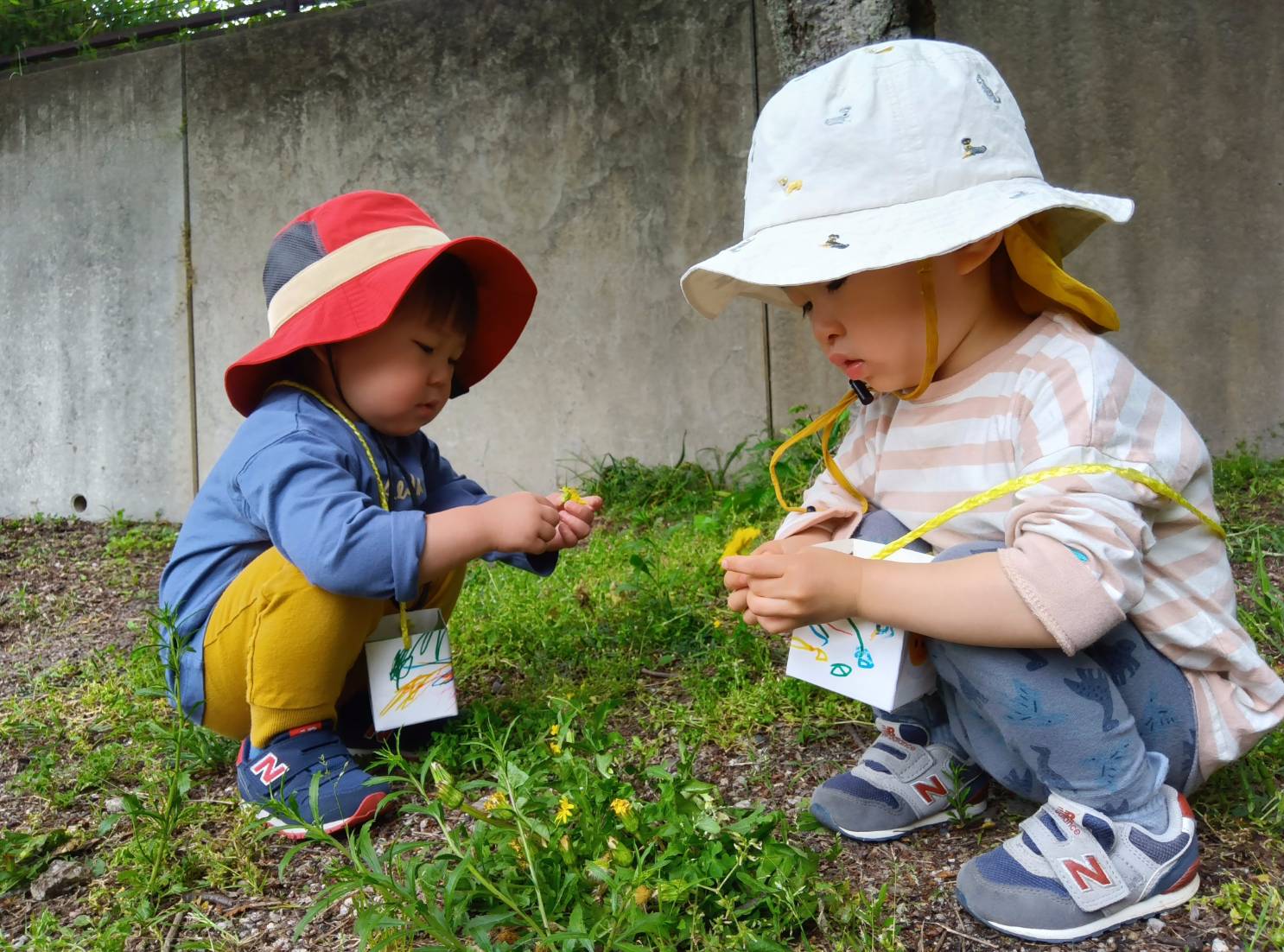 たんぽぽやカラスノエンドウを見つけて自分で手に取ります!