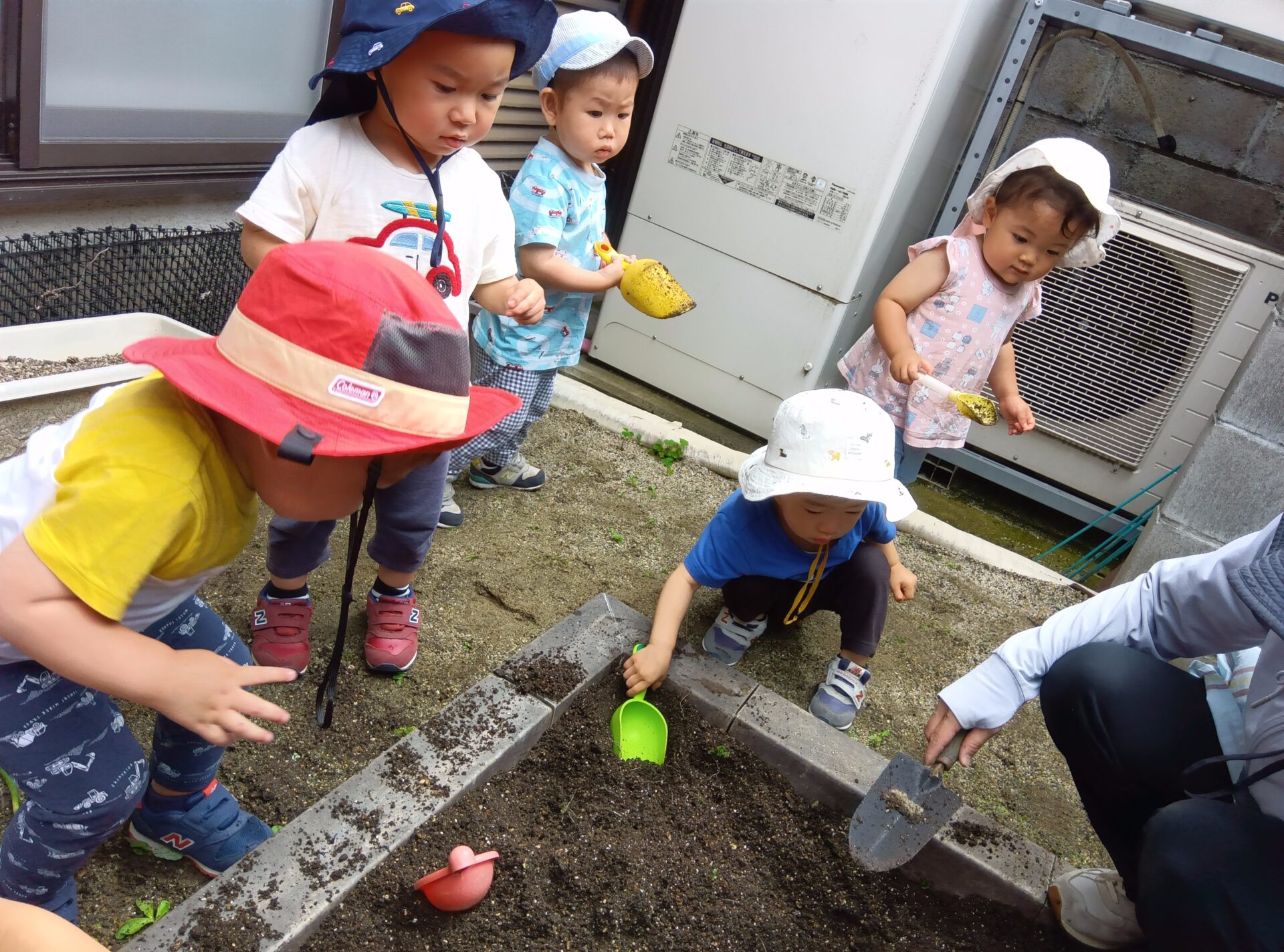 「ダンゴ虫!」「アリ!」「カマキリ!」と虫との触れ合いも楽しんでいた2歳児の子どもたち。