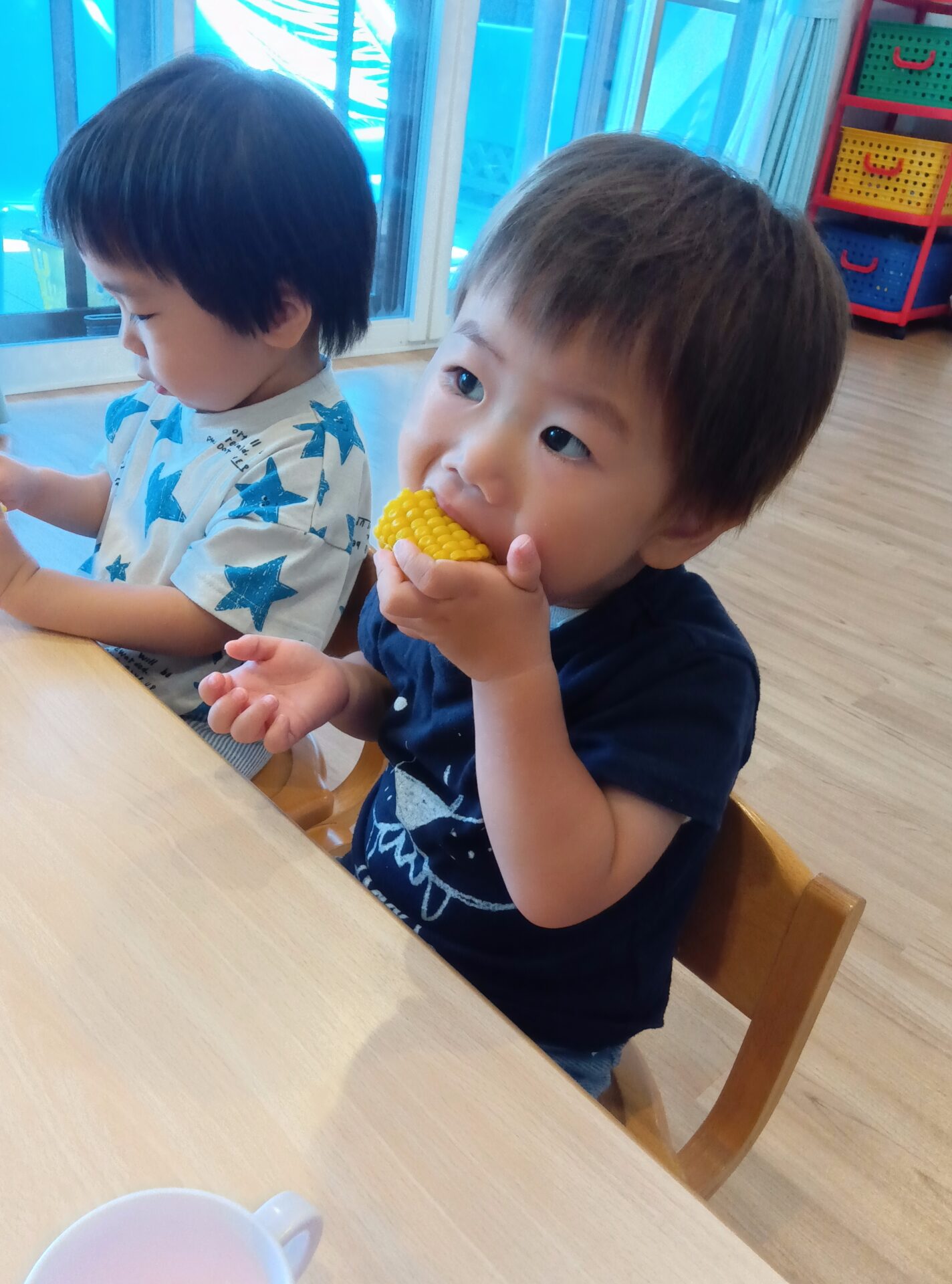 おかわり争奪戦をしながら、わいわいおやつの時間を過ごした子どもたちでした。