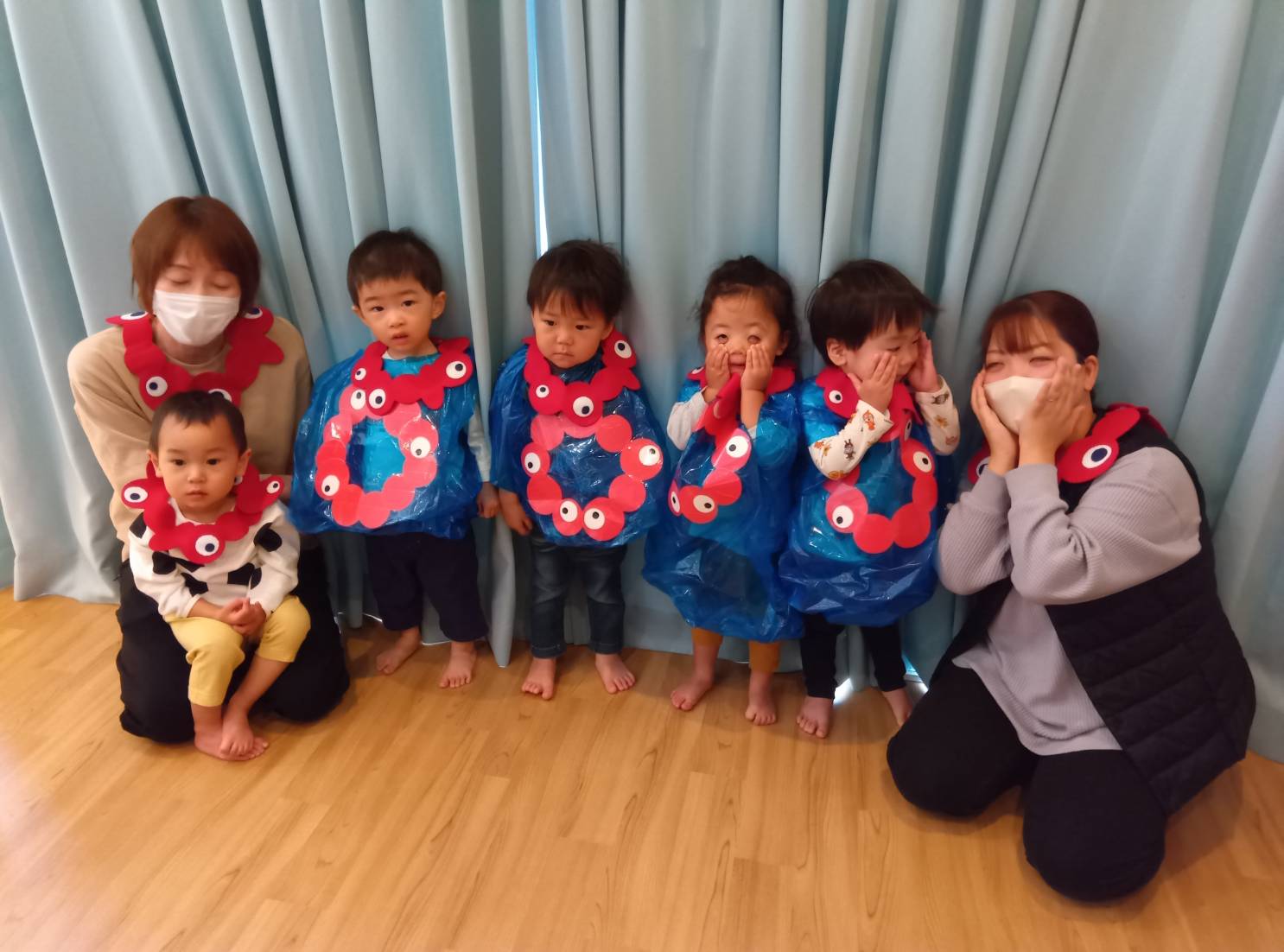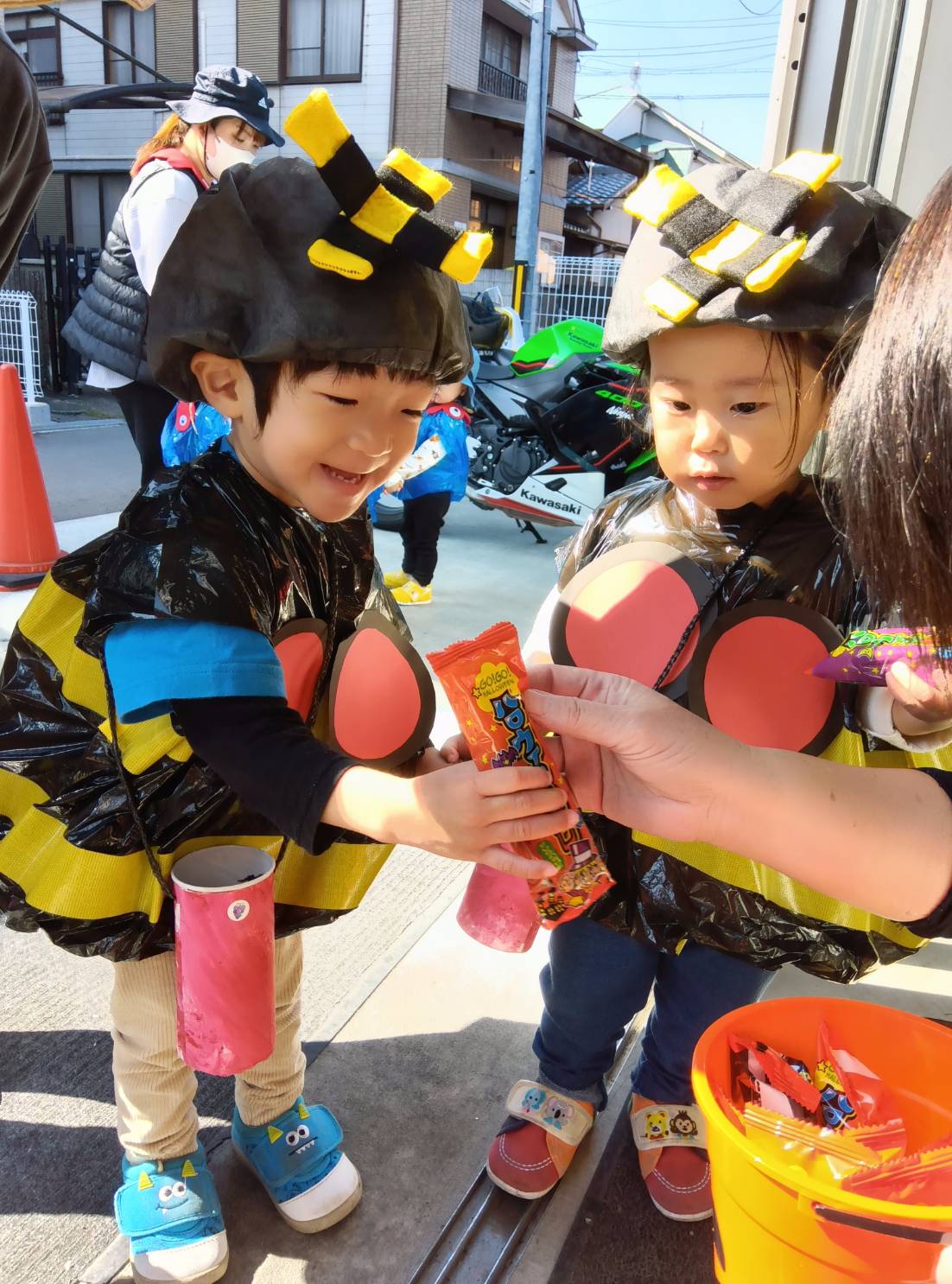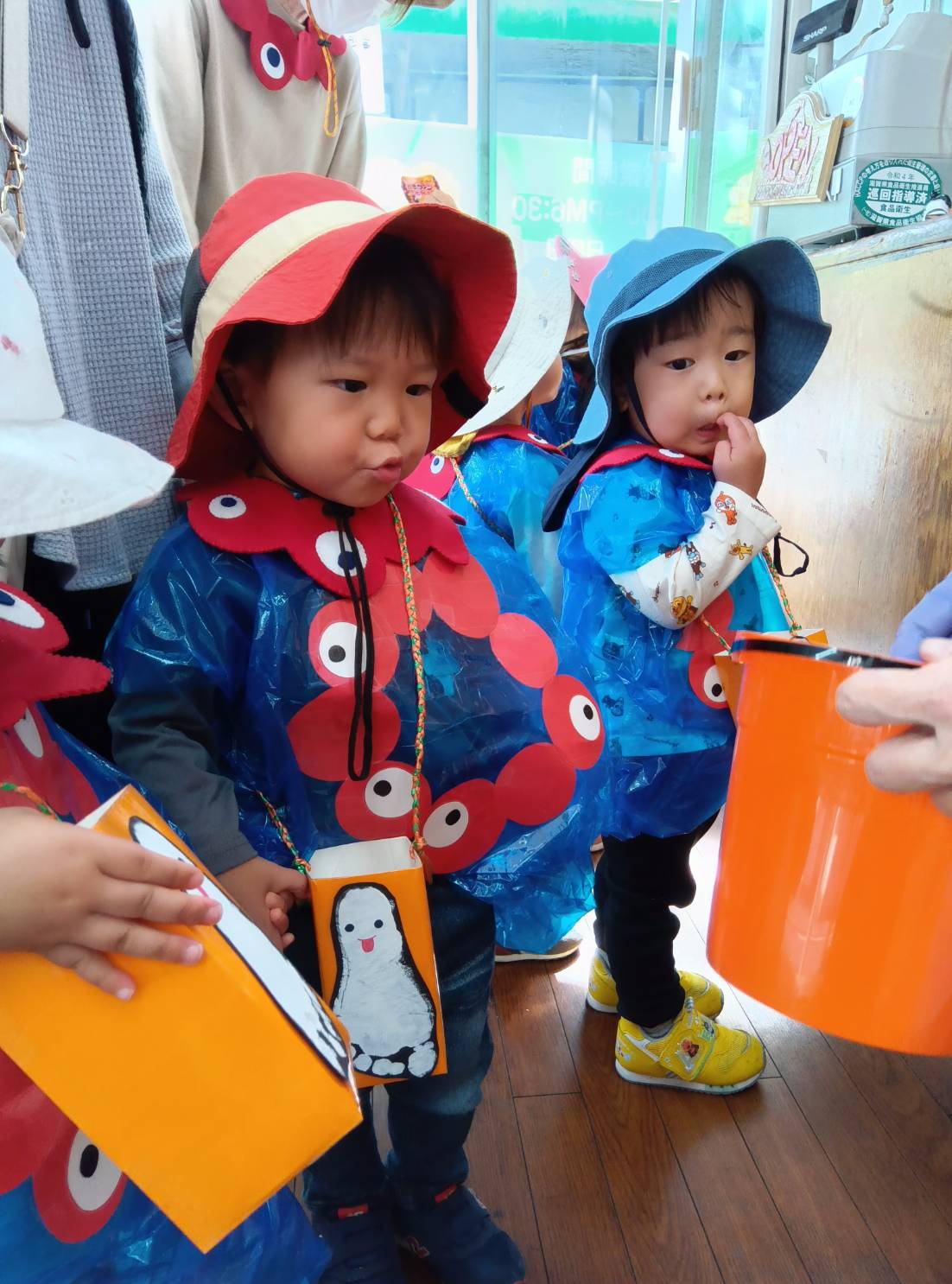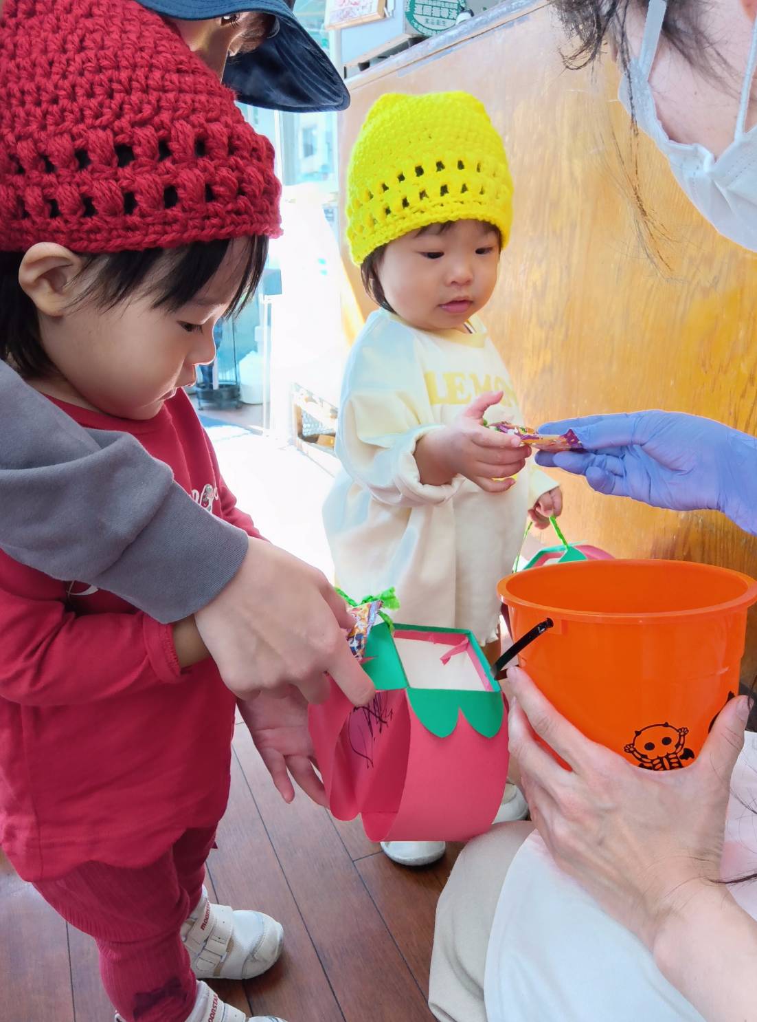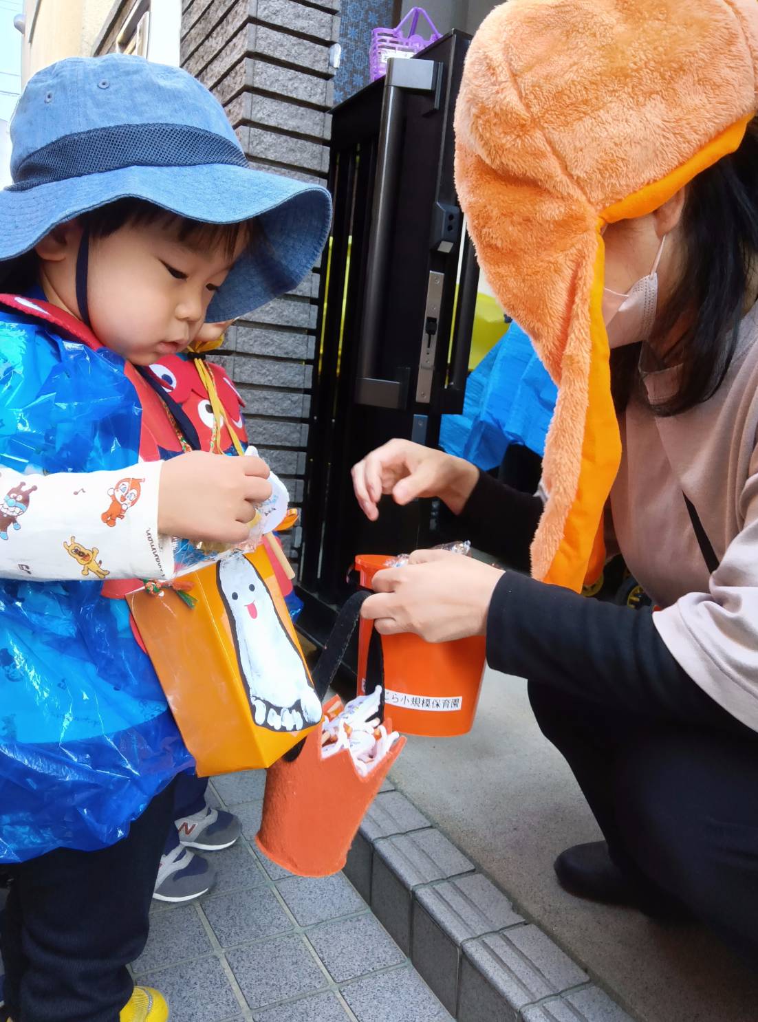 まずは唐橋くじら小規模保育園へ向かいます。「トリックオアトリート」の声に