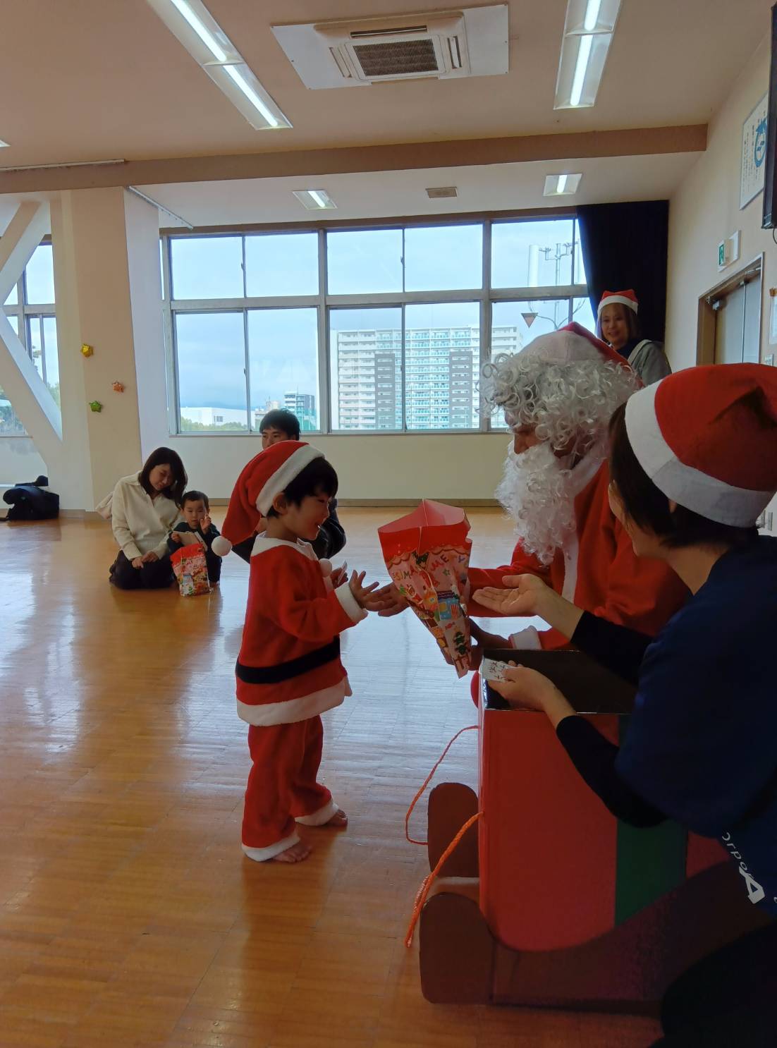 サンタさんにありがとうと手を振ったり、サンタさんから、ジュニアサンタさんへ!かわいいですね。