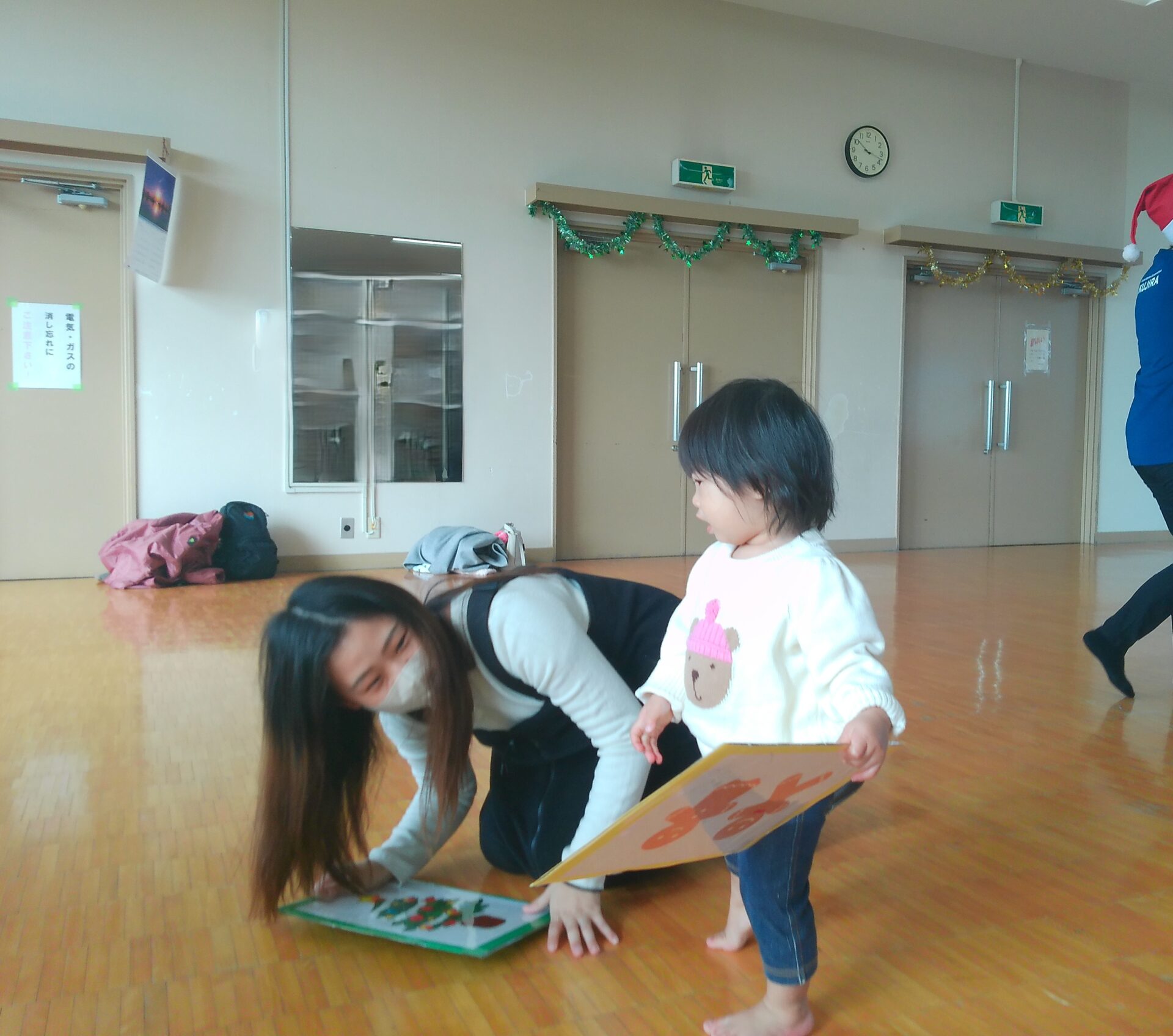 手袋シアターで「あわてんぼうのサンタクロース」の歌を聞いた後は