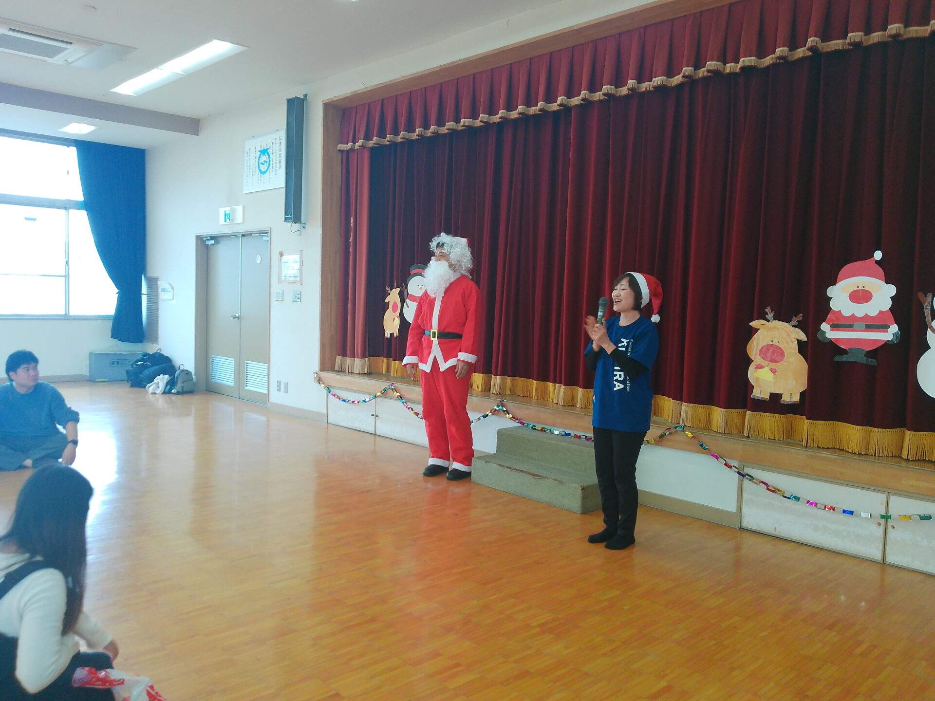 あっちかな?こっちかな?とキョロキョロ探しているとステージからサンタさんが登場!