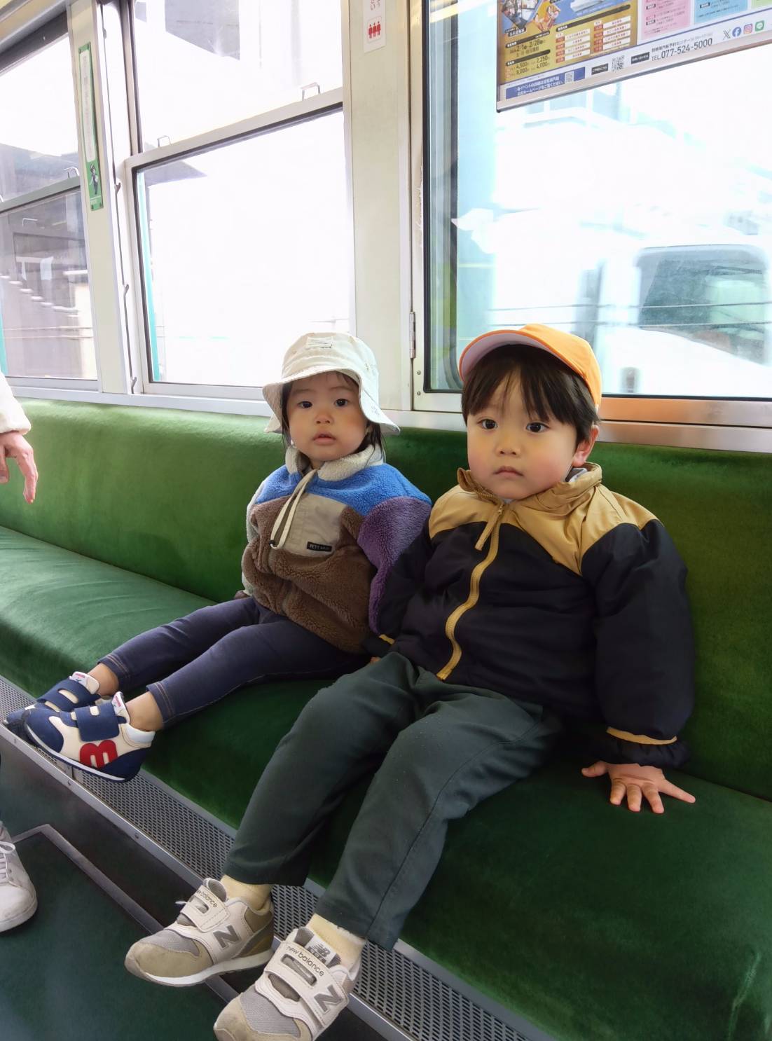 いつも散歩で見てる大好きな京阪電車にのって遠足に出かけました。