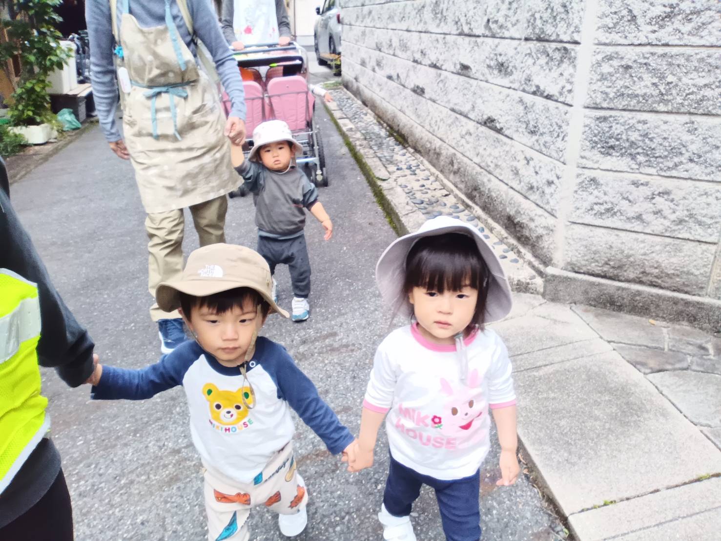 1歳児のパングループさんは手を繋いで歩く事が少しずつ出来るようになりました!