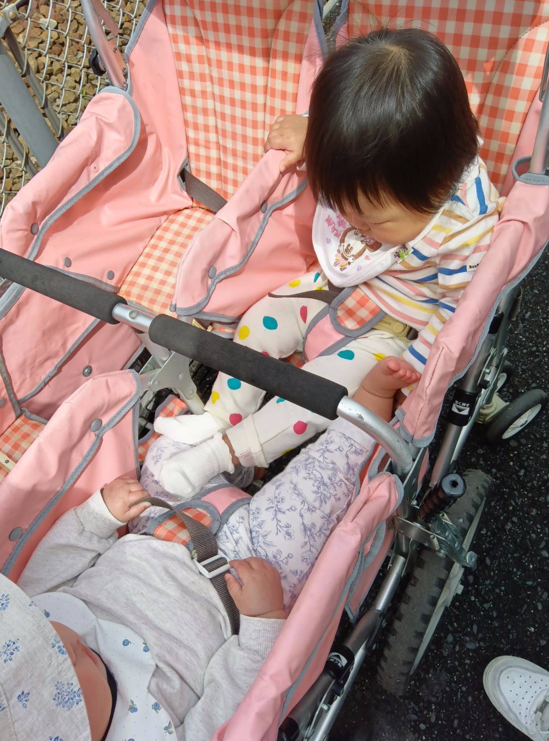 0歳児のミルクグループさんはバギーに乗っておさんぽ♫