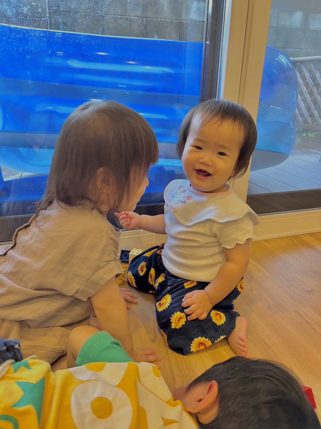 0歳児のお友だちは、顔見合わせて笑いあったり、