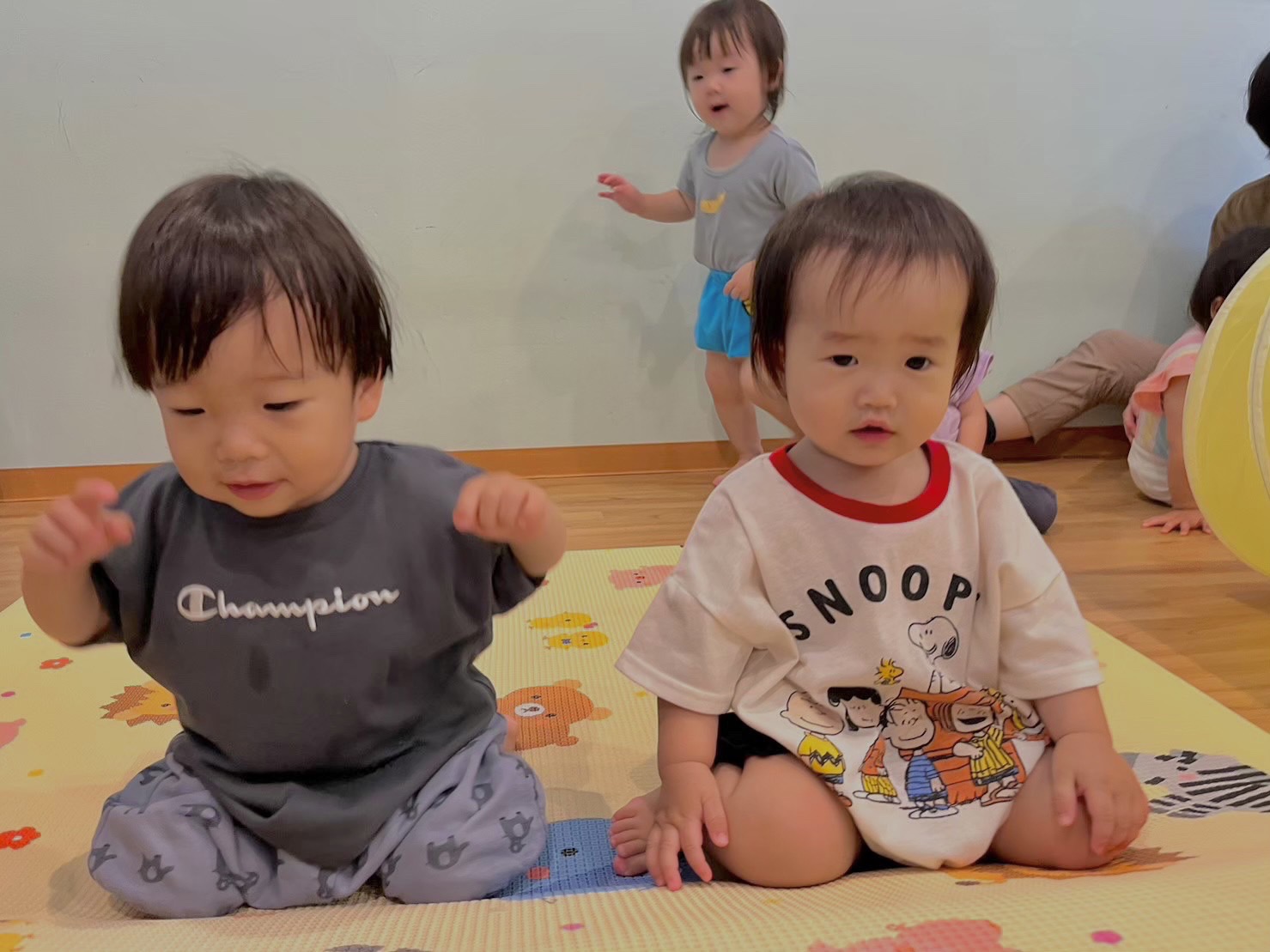 少しずつ、まわりのおともだちの存在に興味を示し始めています。