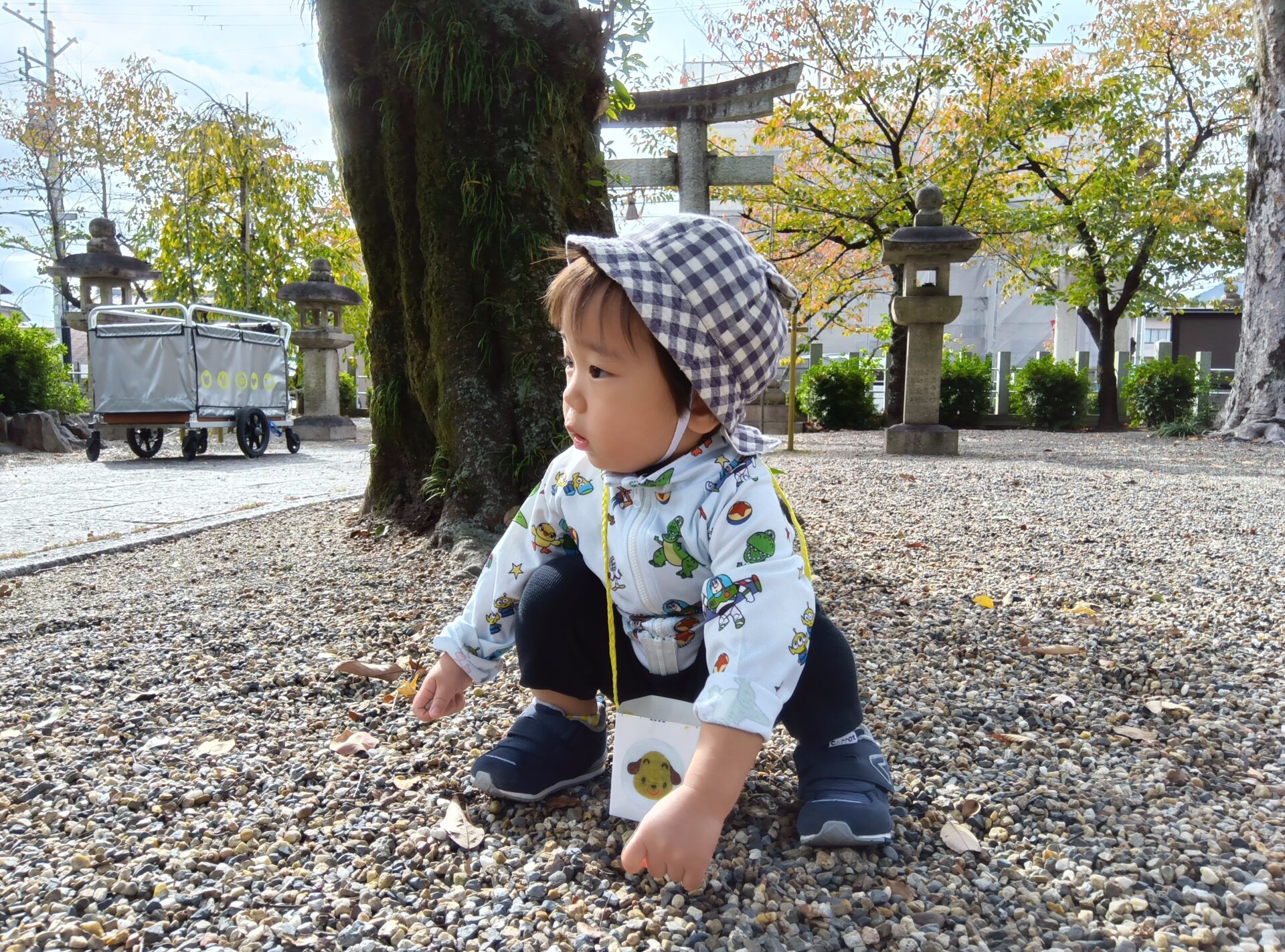 この時期、御霊神社はどんぐりが大豊作です。一心不乱にひらいます。ひらったどんぐりを大事そうに手に握りしめます。なかには小石でカバンが一杯のお友だちもいますが、いっぱい入れてジャーと戻し,また、いっぱいに入れる!その繰り返しが楽しく、こちらもまた一心不乱でした!