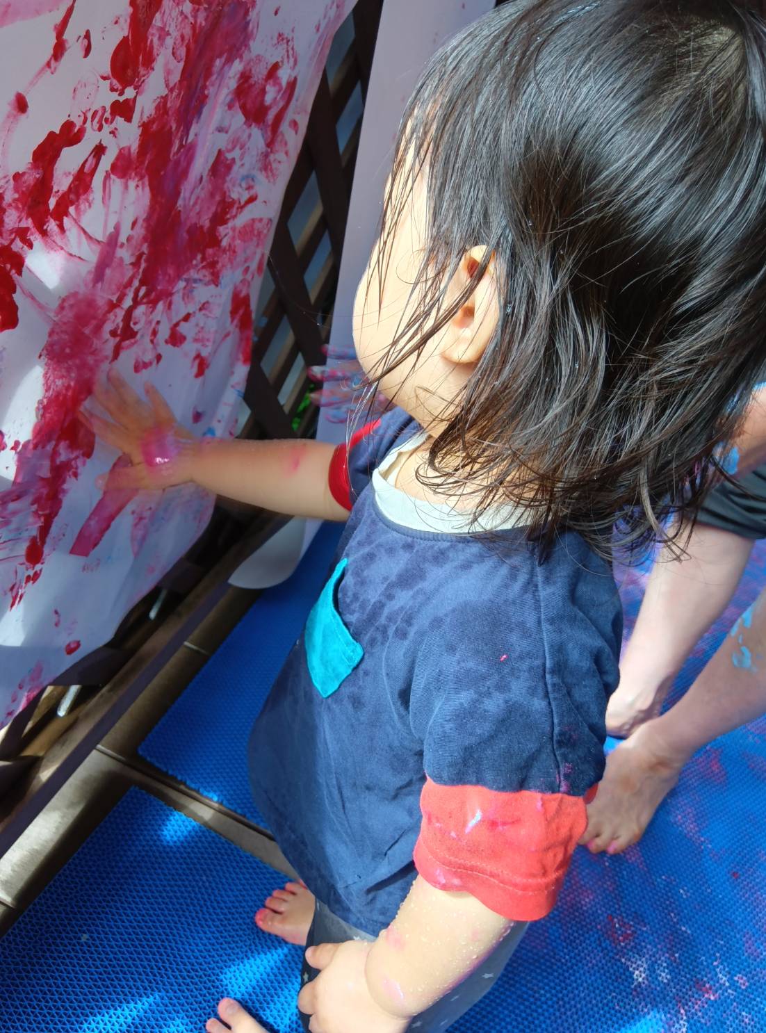絵の具に触れていました。経験ってすごいですね!9月になったいはいえ、まだまだ暑い日が続きます