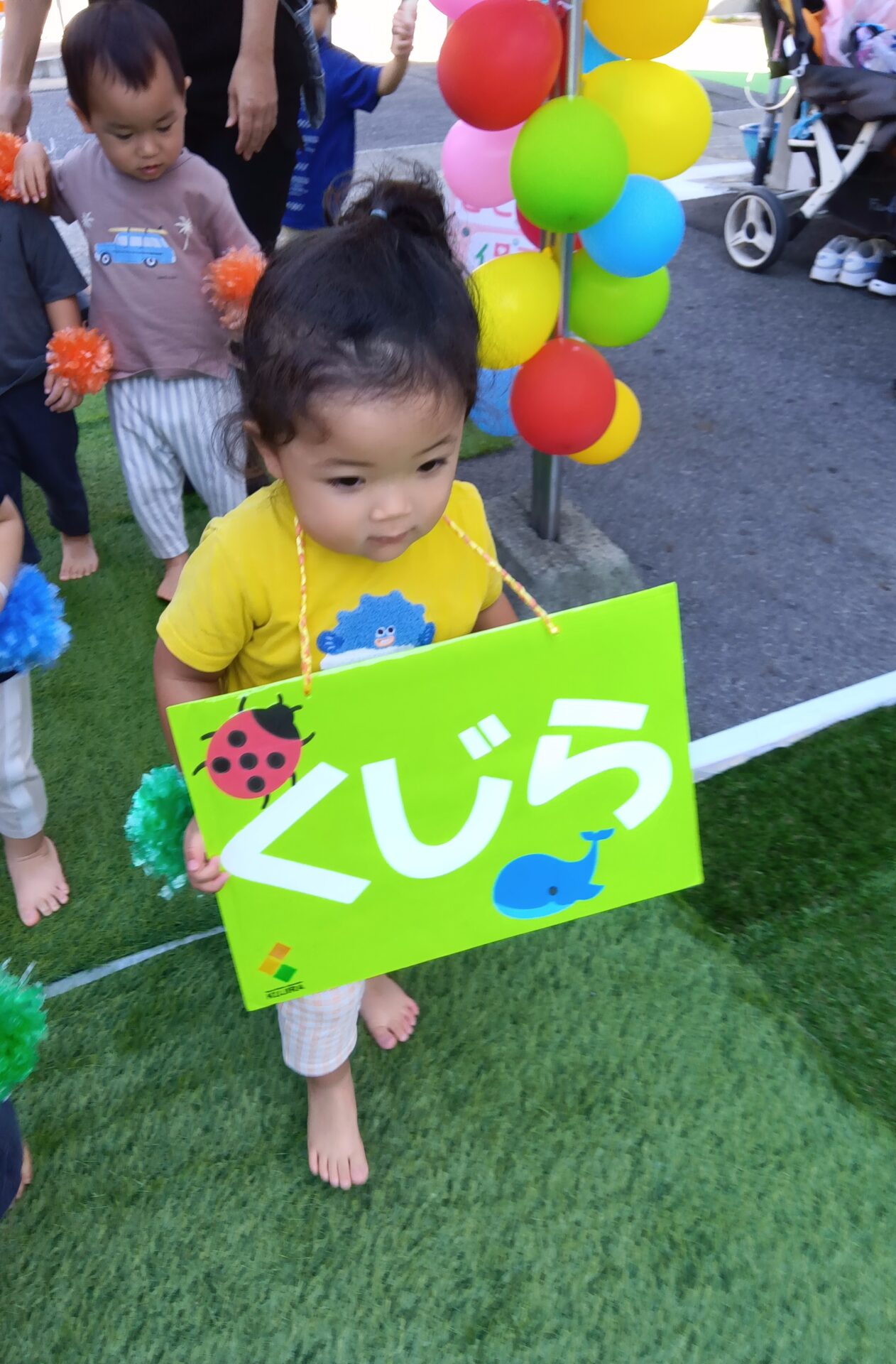 入場行進ではドキドキ緊張していた子どもたちでしたが、プラカードを持って入場!